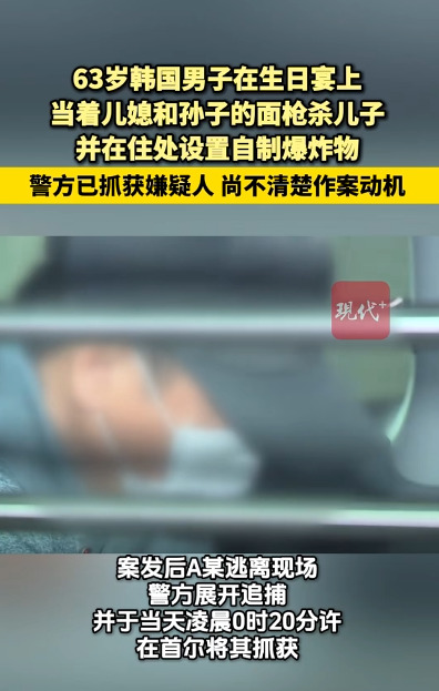 韩国出了个狠人老爹,过生日的时候,竟然掏出自制土枪,砰砰两枪把他亲儿子给崩了!你说这图啥啊?儿子辛辛苦苦给他办生日宴,结果换来两颗枪子儿,直接送走!更吓人的是,这老头还在自己家藏了炸弹!这简直就是电影里的情节,太疯狂了!