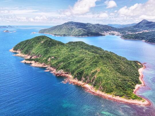 牛尾洲,位於香港西貢的牛尾海。這個無人居住的小島擁有壯觀的自然景觀,包括六角形火山岩地形和著名的幽廊秘洞。四周環繞著清澈的海水。