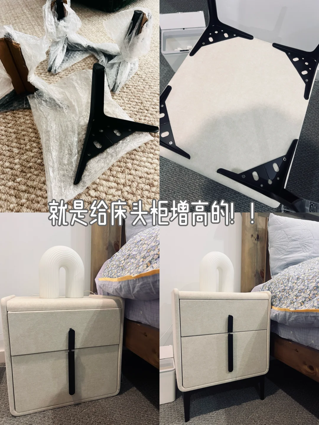 揭秘一下我上次海运买回来的那个黑色小东西到底是啥~❓ - 原来它们是 床脚/桌脚!🛏️ 因为我海运买的床头柜,收到后才发现跟家里的床高度完全不搭,差了好几厘米,看着特别别扭。结果花了 24块钱 就轻松搞定~ - 可以根据自己想要的高度去选择,还有不同颜色可挑,安装超级简单,不用任何技巧,拧上去就好。而且装上之后完全不违和,和原本家具融为一体,简直太实用了! ❤️🧡💚💙强烈推荐给遇到同样困扰的小伙伴