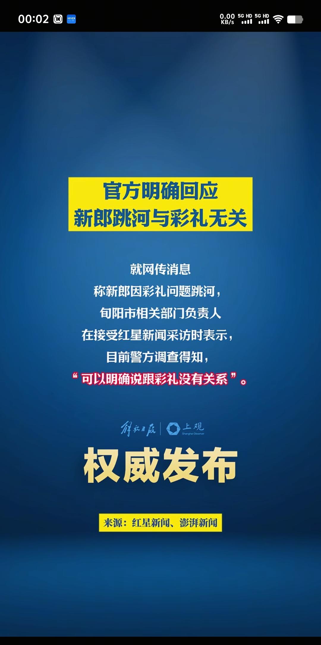 大家就别胡乱猜测了,官方已经说的清清楚楚,新郎跳河与彩礼无关。两人是高中同学,而且处了7年,感情非常稳定,你认为女方能做出那临时加价的事吗? 至于为什么男子突然跳河,肯定是有原因的。网传是一个鸡蛋的原因,新娘在新郎家因为不吃鸡蛋,专门嘱咐新郎,煮饭的时候别放鸡蛋。具体是什么原因新娘不吃鸡蛋,也许是不喜欢吃,也许是有其它说法。可能是事多,不知道是新郎忘了,还是煮饭的人忘了,还是把鸡蛋煮进去了。端过来,新娘翻脸了,开始闹脾气。在去酒店过程中这件事情一直没放下,有过争吵和厮打,最终上升到新郎情绪失控。 问世界情为何物,直教人以身相许。也许当时新郎只想逃避,根本没想到死,等到他跳下河的一瞬间,冒了一下头,后悔已经晚了。