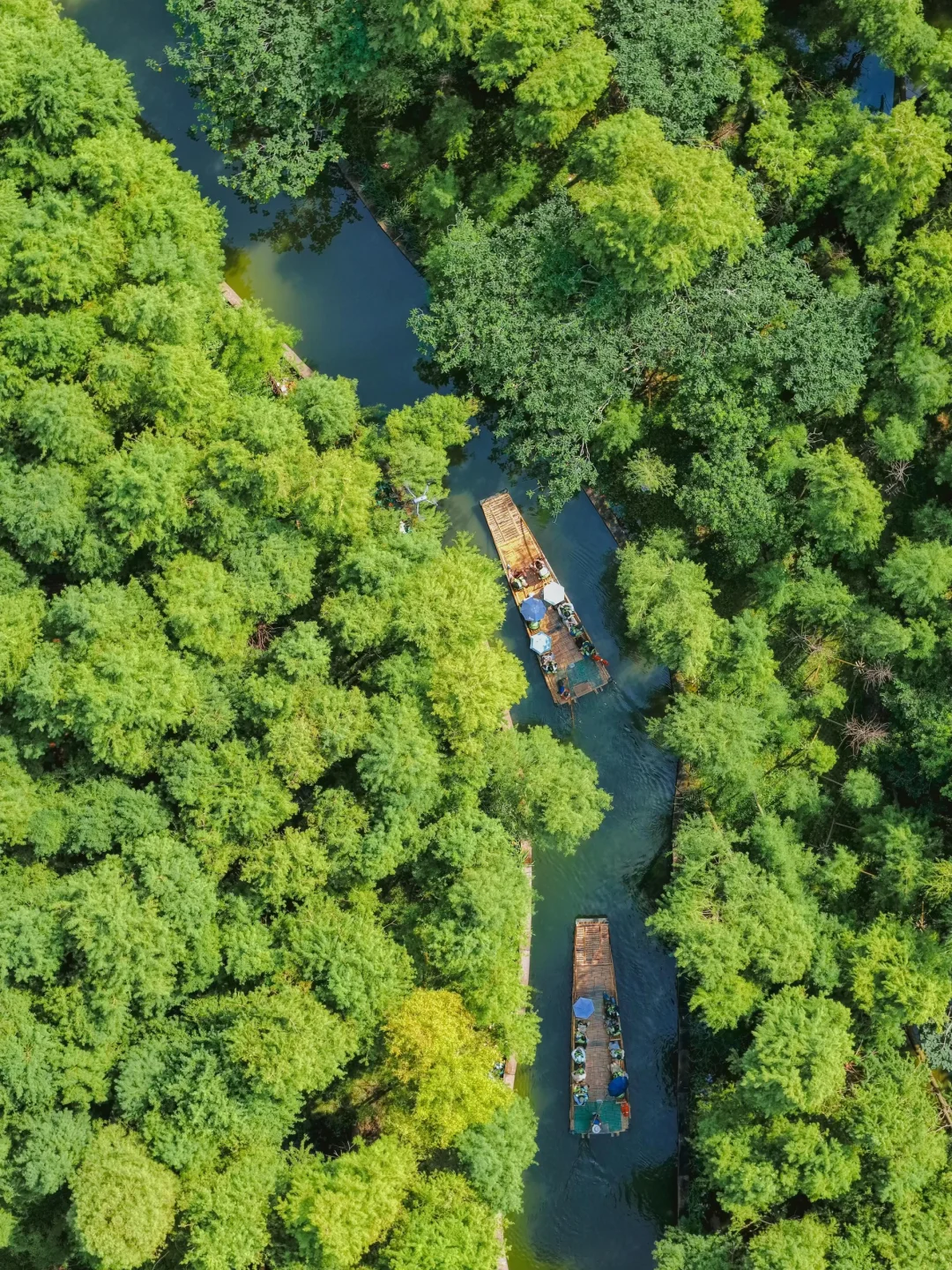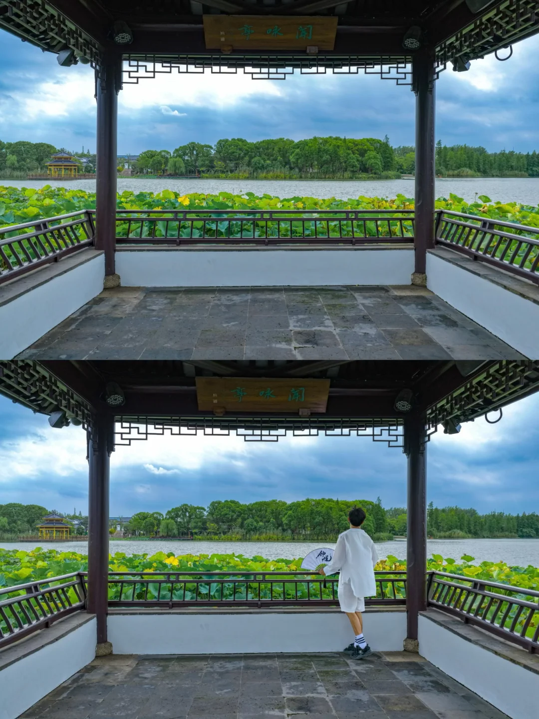直奔水上森林,秋季池杉渐红,划着皮划艇穿行林间超出片。顺路打卡姜太公钓鱼台,登观景台看湖光与虞山相映,清晨人少景静,浅色系衣服拍照巨温柔。