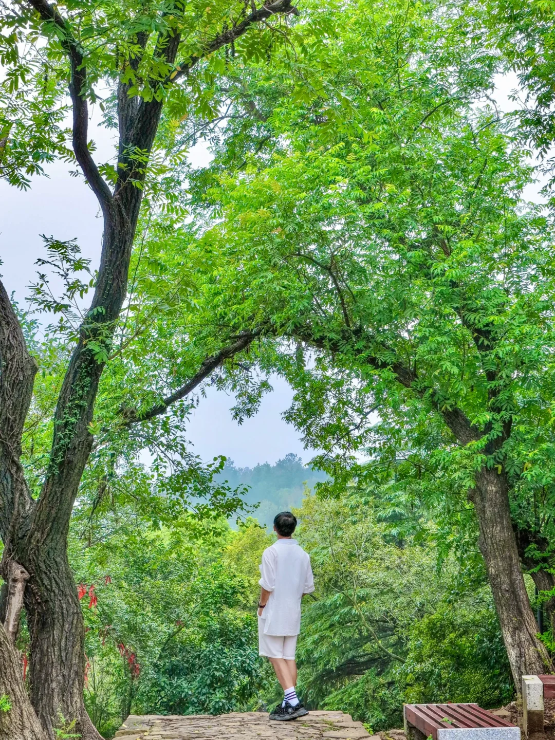 早起冲兴福寺旁的望岳楼老面馆,坐在500年古树下吃碗蕈油面,野🍄🟫生菌熬的油香到上头。寺内找“兴福石”打卡,纹路天然成“兴福”二字超奇妙。随后登虞山去藏海寺,赵朴初题字的山门藏在林间,登顶能俯瞰全城风光