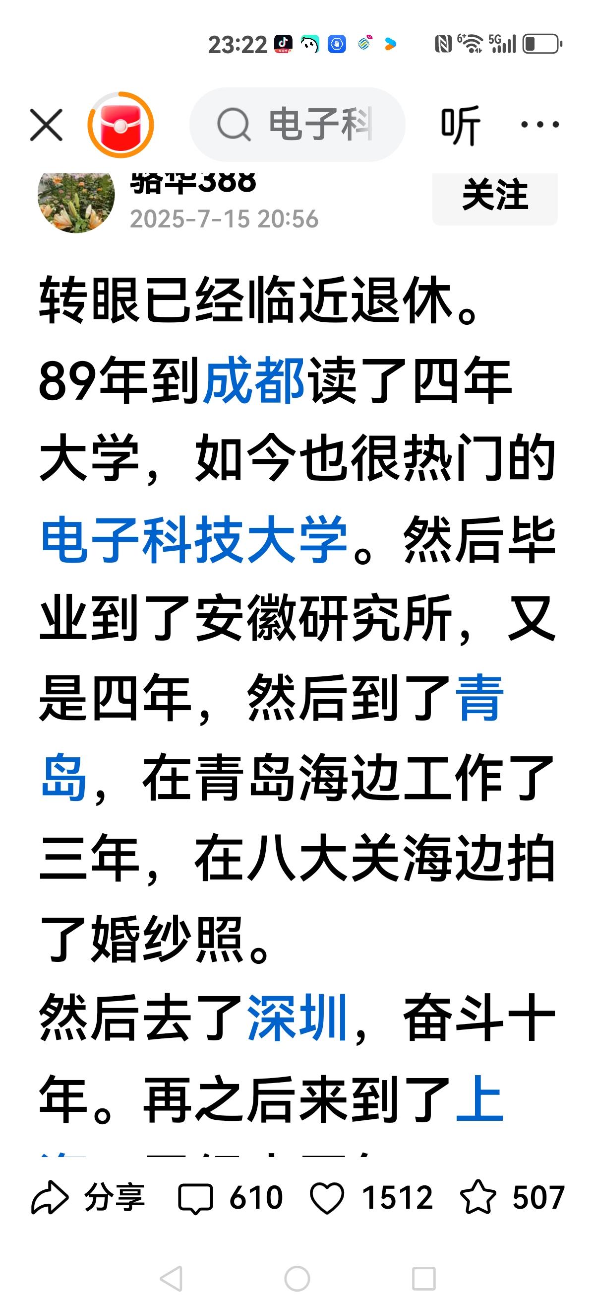 【真羡慕】 一个人如何度过一生才算有意义?其实就是看着别人都是好,总感觉自己很失意。 今天,看到一位仁兄发帖,即将退休,大学毕业经历五个城市,最后在上海定居。 前不久,还看到一位工艺美术学院毕业的上海人,最后去了加拿大的阿尔伯塔,说出:此心安处,即为吾乡。 看看自己,小时候妇女,走过几个城市,后来定居无锡,高中毕业去了南京念大学,毕业回企业上班,无意中从事水行业,后来辞职个体户,再也没有离开水行业,也没有离开无锡! 回想过去如果去北京,深圳,闯一闯不知又会是什么天地? 好像这辈子很平淡,没有任何波澜,看着别人履历羡慕不已!