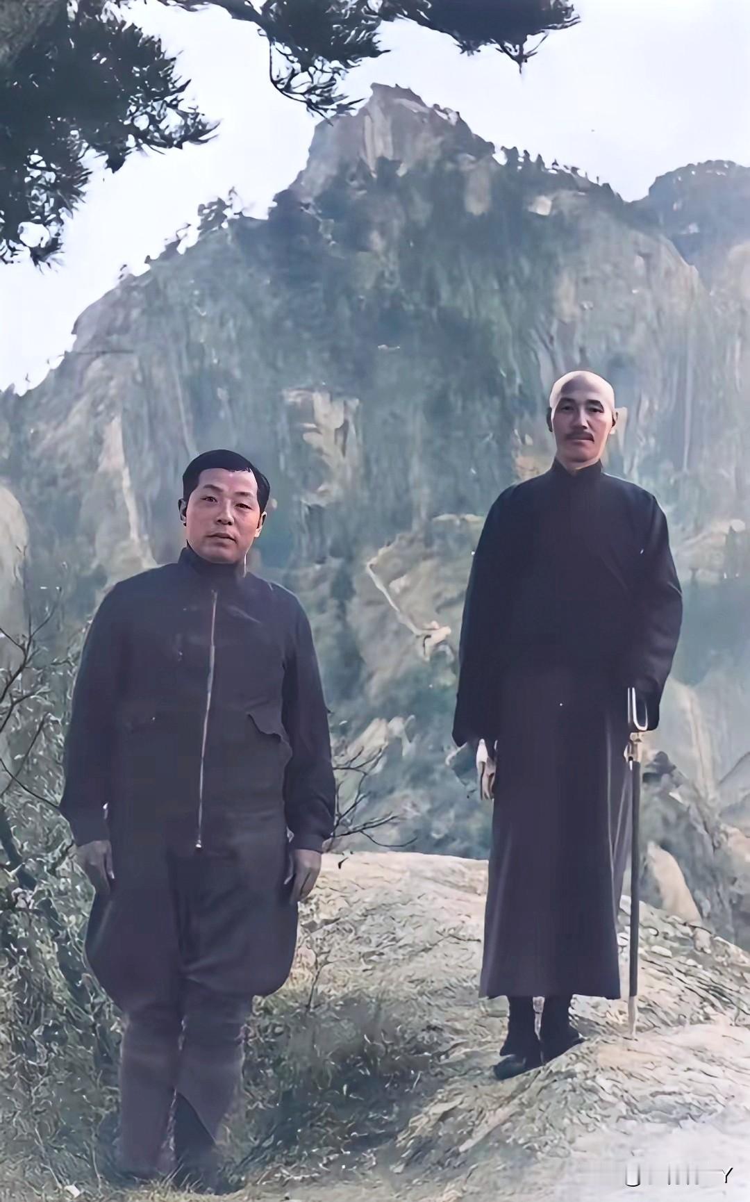 西安事变前夕,张学良与蒋中正一起爬山的合影老照片。这绝非演戏,也不是电视剧里的演员,而是他们二人当时真实的样貌。那时候少帅真是帅啊!
