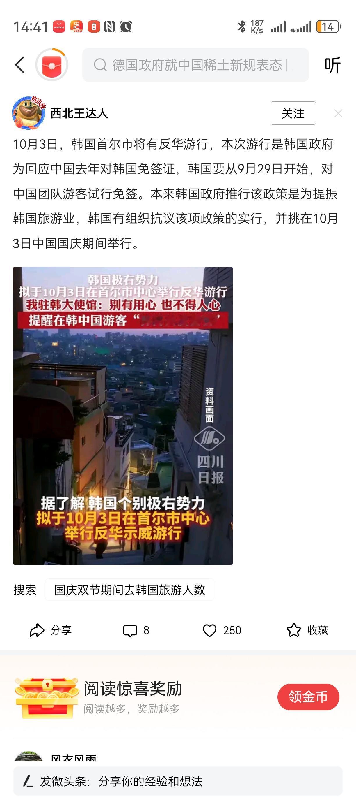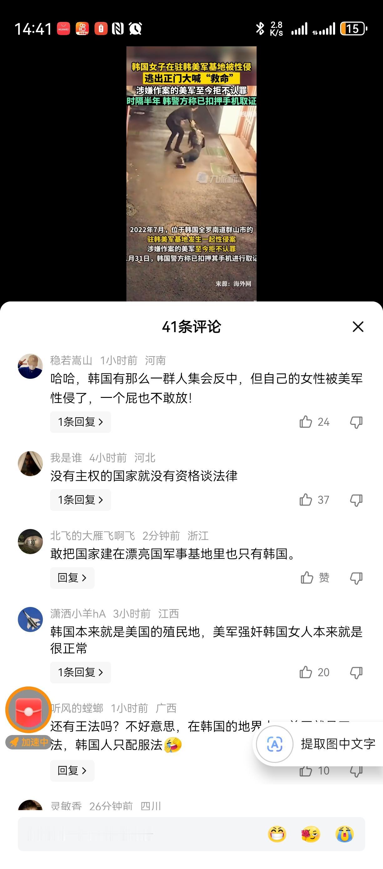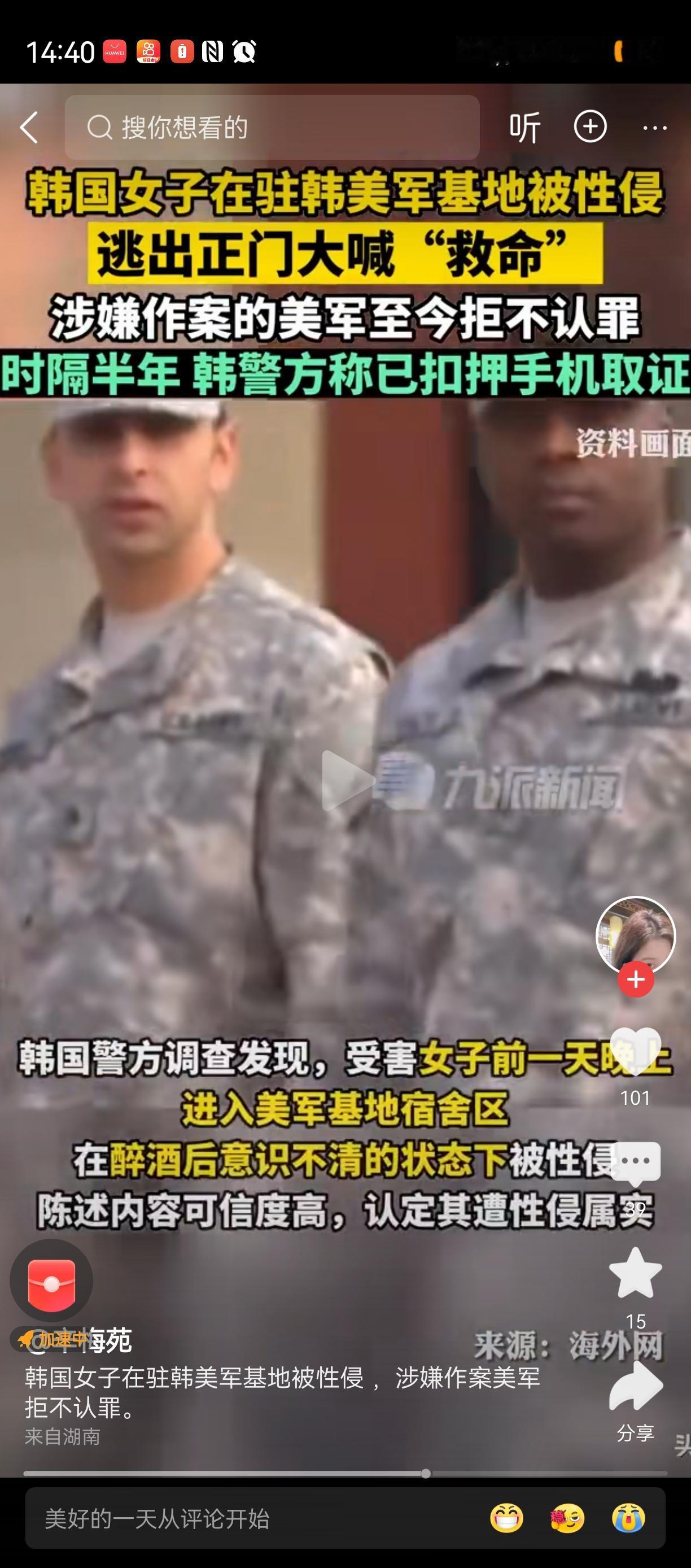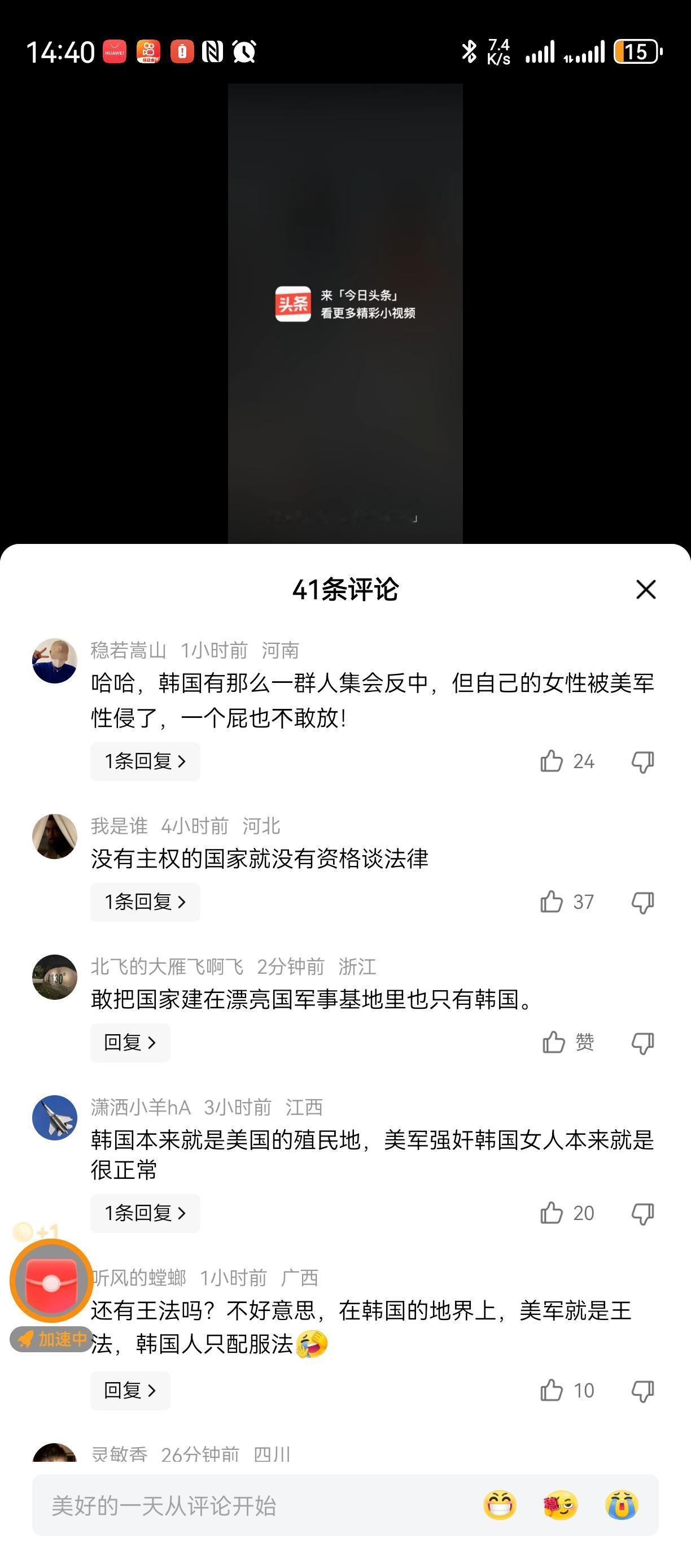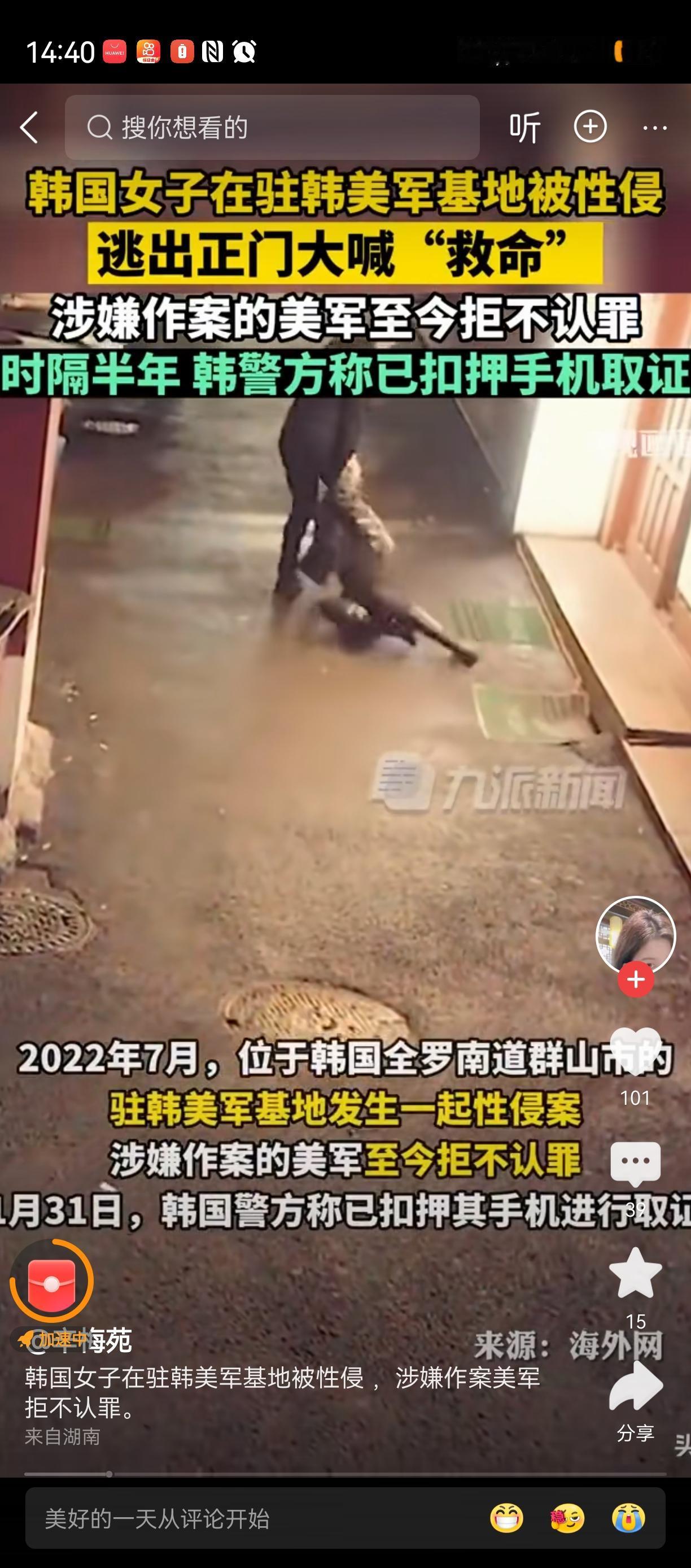 珍惜国家[加油] 几百年前我们也有租界。。。 几百年后韩国还有驻军。。。 女子被欺负居然不实用法律 。。。 美国驻军韩国 思密达就知道针对我们, 我们去韩国旅游影响到他们了[擦汗][苦瓜]