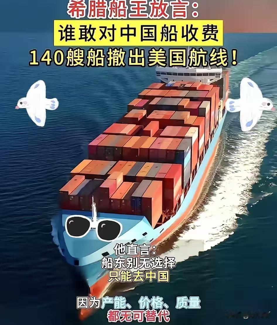 为希腊船王点个赞,希腊船王放言,只要对中国船收费,他的140艘船将撤出美国航线 这句话一出,全球航运圈炸了锅,外媒纷纷报道这位希腊船王的硬气 马里纳基斯的这番表态绝非一时冲动。作为掌控着全球重要航运命脉的商业巨子,他比谁都清楚成本与收益的平衡点在哪里。他的强硬姿态恰恰印证了一个简单却残酷的现实——在当今全球航运版图上,中国制造早已不是可选项,而是必选项。 看看全球各大船东的实际行动就知道了。就在美国放出收费风声的同时,地中海航运依然在中国船厂下单订造了12艘超大型集装箱船。这笔订单本身就是一个响亮的回答:在商言商,没有人会为了政治作秀而牺牲商业利益。 这场博弈背后其实是经济规律的较量。航运机构测算过,美国这项收费政策一旦落地,每个集装箱的运营成本就要增加300多美元。这笔钱最终会流向哪里?当然是转嫁到美国的零售商和消费者头上。从中国的家具、电子产品到日常消费品,美国超市里的价格标签很快就会告诉你真相。 美国国内的反对声浪也在不断高涨。全国零售联合会已经发出警告,说这会加剧物资短缺风险;美国石油协会直言不讳地指出,这是在削弱美国的能源主导地位。更讽刺的是,美国港口管理协会自己都承认,这么搞下去美国的出口量可能要下降12%。 说到底,全球供应链就像一张精密编织的网络,强行剪断任何一根线都会引发连锁反应。当政治试图扭曲经济规律时,规律总会找到自己的方式反弹。希腊船王的表态之所以能在全球航运界激起千层浪,正是因为他道出了一个共识:在全球化时代,单边主义的围墙注定坍塌。 各位读者你们怎么看?欢迎在评论区讨论。 (免责声明:本文基于公开权威信源深度分析,坚持客观立场,旨在促进理性讨论。原创内容结合AI辅助生成仅供交流参考,不构成任何投资或决策建议。信源、图片均来自网络,若存在争议、图片侵权问题,请及时联系作者,将予以删除。)