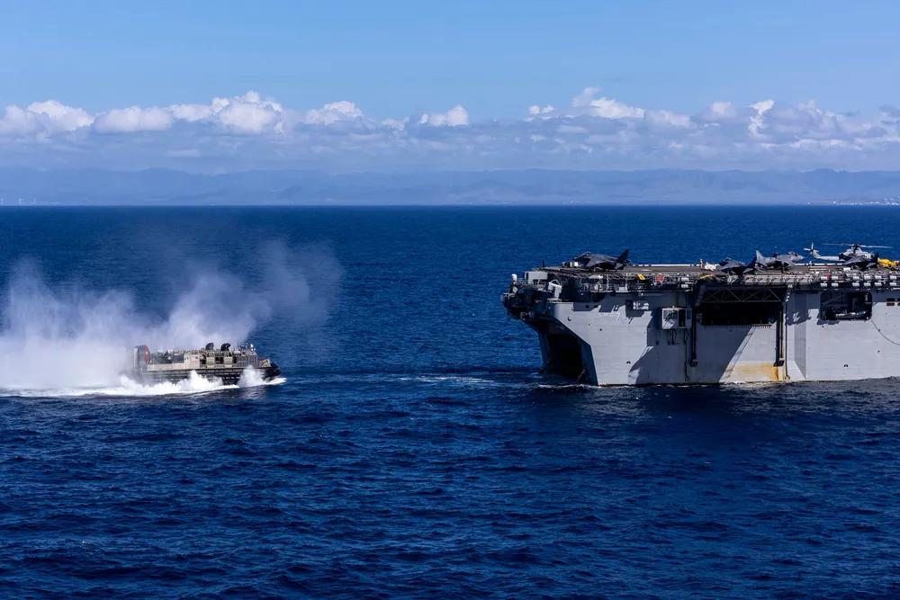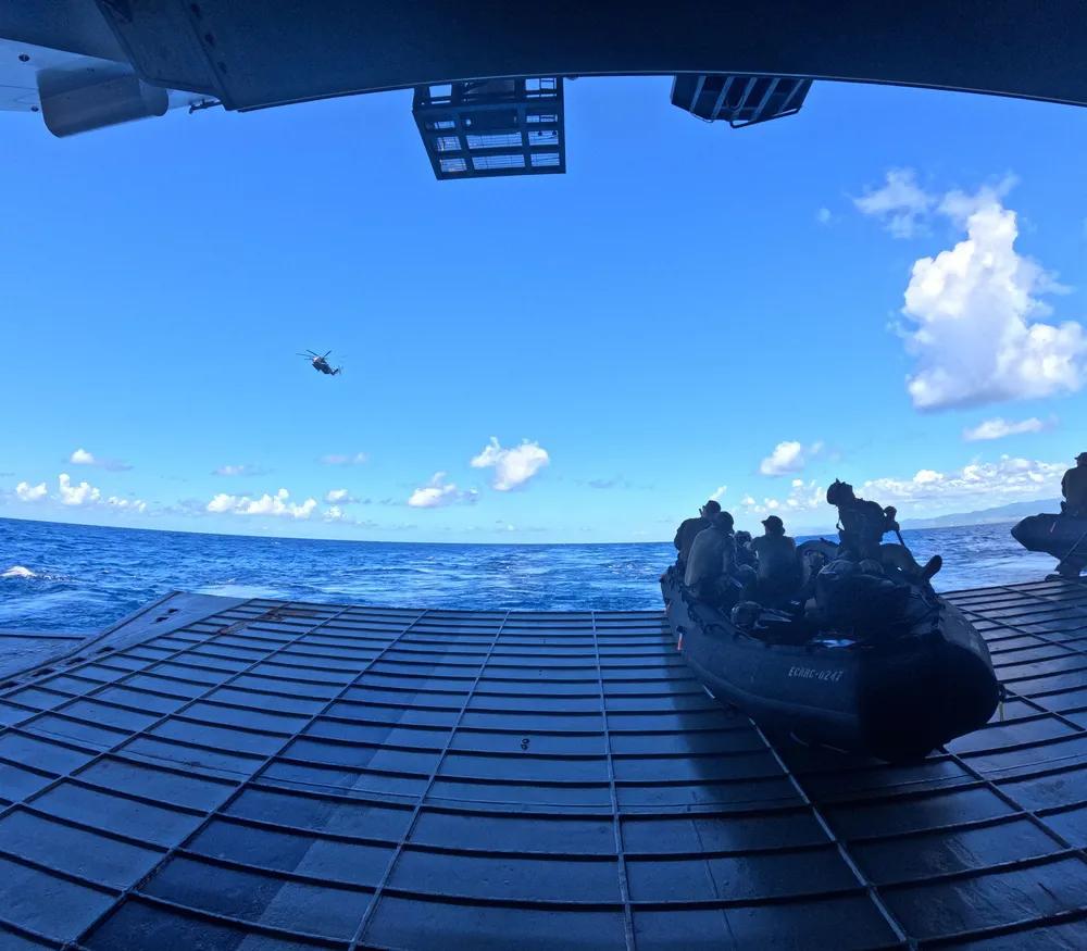 10月10日,美军持续在委内瑞拉周边海域进行军事挑衅,黄蜂级两栖攻击舰“硫磺岛”号(LHD 7)正在进行小艇,登陆气垫船训练演习。美军部队部署到加勒比地区,以支持美国南方司令部的任务、国防部指挥的行动以及总统的优先事项。