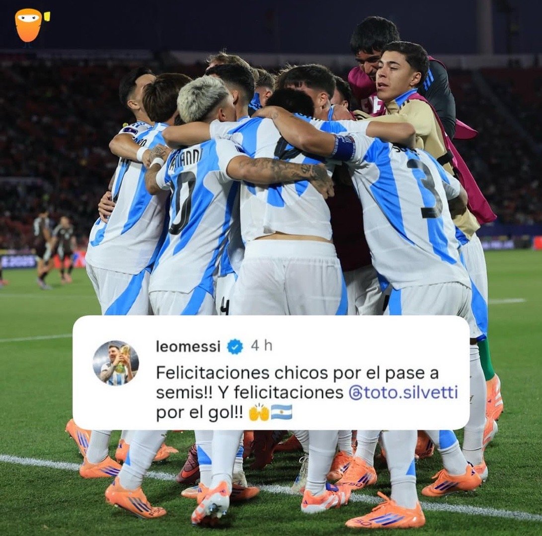 📲梅西祝贺阿根廷u20 晋级U20世界杯半决赛👏他还祝贺小队友马特奥·西尔维蒂打进一球。[鼓掌]