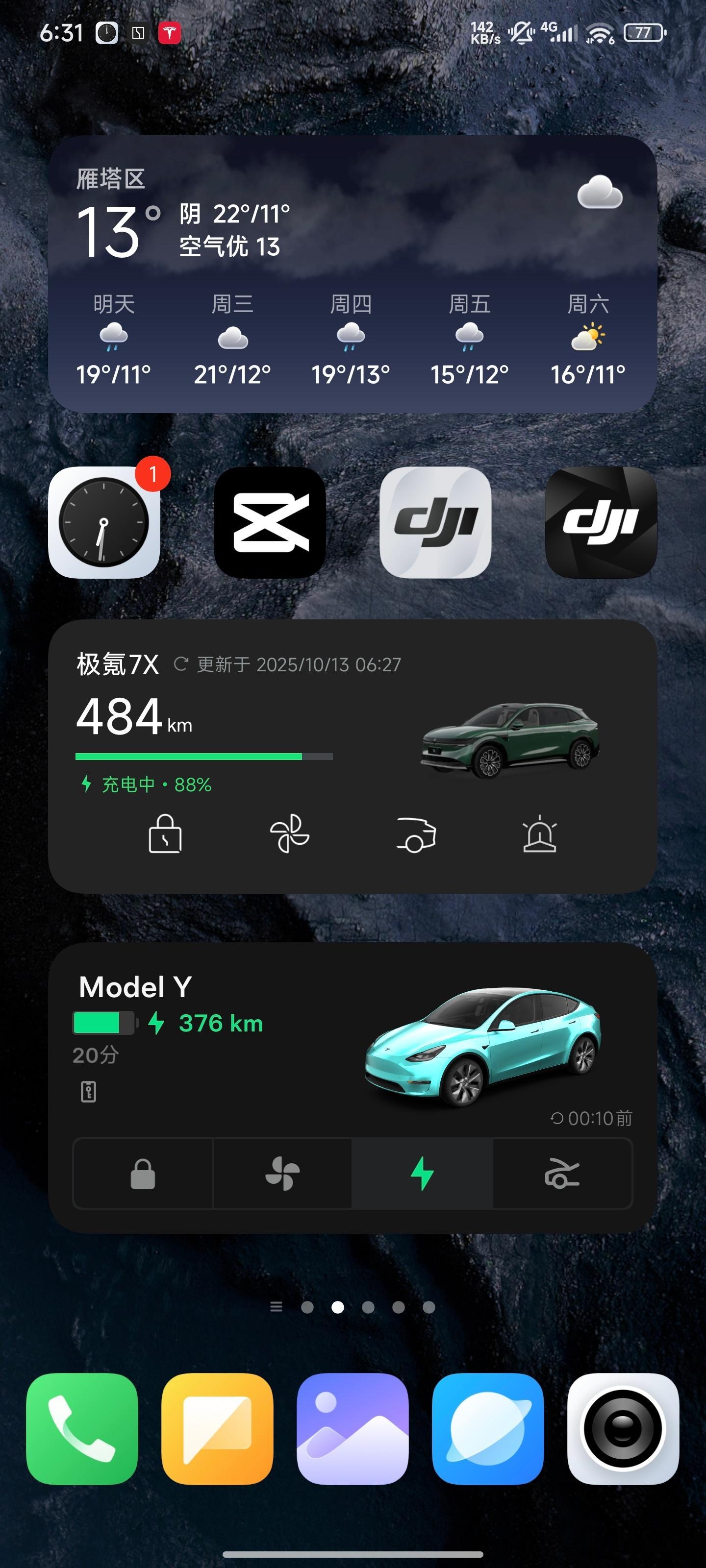 昨晚正好把两个同时充电,四个功能键有点差别,极氪的功能键点击后是直接唤出APP,而不是直接启动某项功能,另外,充电界面有个剩余时间就更好了。