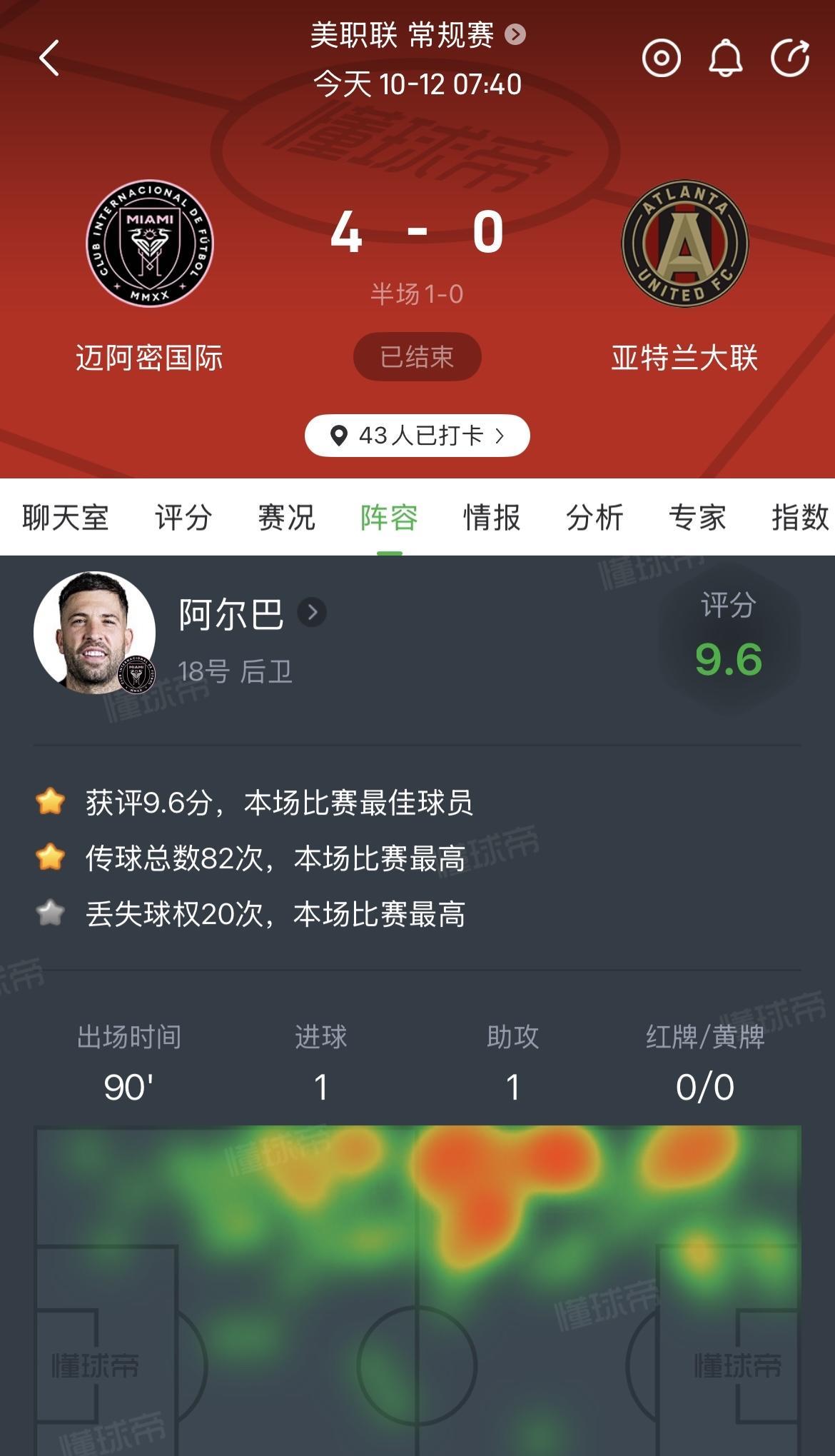“获评9.6分,本场比赛最佳球员;丢失球权20次,本场比赛最高”。 都是触球多也丢球多的人,梅西2射1传,阿尔巴1射1传,并列最高分。倒是触球少也丢球少的阿韦罗,是本队表现最差评分最低的人,0球0助,还射失点球。