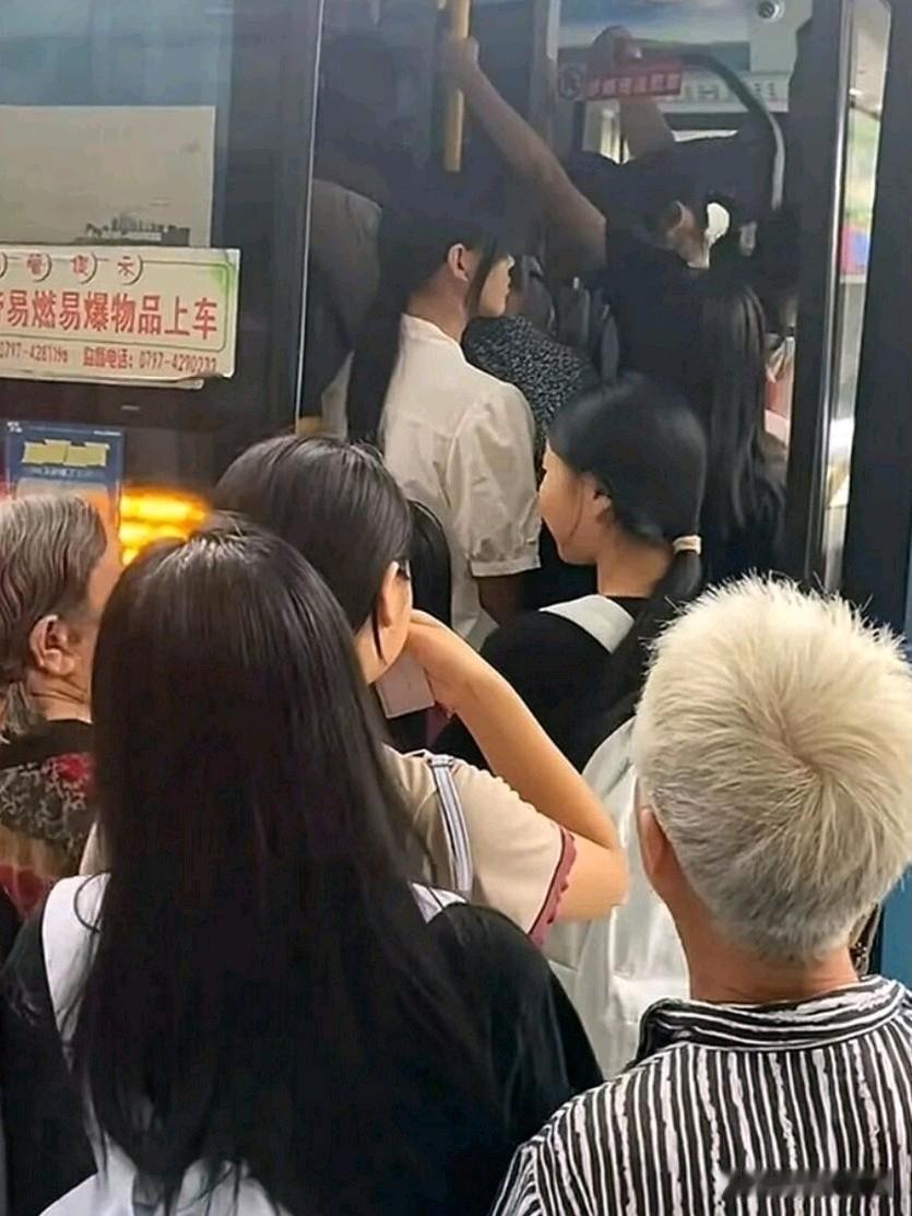 老人的和学生挤公交引发热议! 江西定南县早高峰挤公交让人揪心, 学生急着上学怕迟
