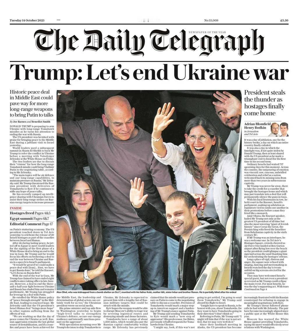10月14日据《每日电讯报》报道,美国总统唐纳德·特朗普计划向乌克兰提供远程战斧导弹,同时他将注意力转向结束与俄罗斯的战争,此前他在周一访问以色列期间因为为中东带来和平而受到赞扬。