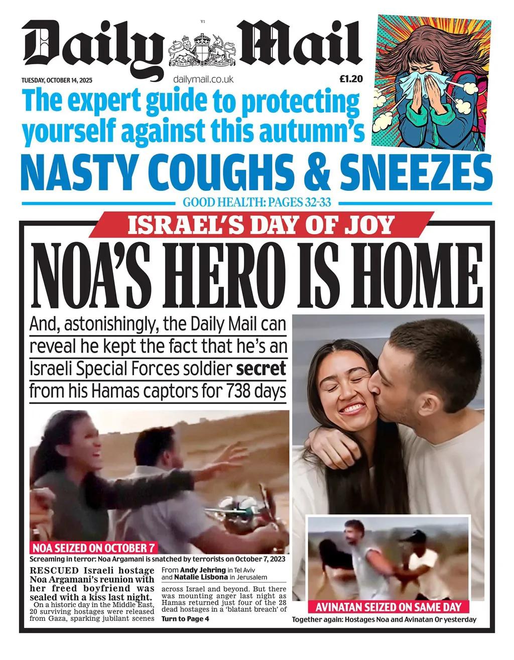 有中国血统的以色列人Noa Argamani也终于被释放了! 《每日邮报》报道,被释放的人质阿维纳坦·奥尔在被哈马斯扣押的738天里,一直对绑架者隐瞒自己是以色列特种部队士兵的身份,他与女友亲吻,成功营救了人质诺亚·阿加尔马尼,两人在终于重聚时感动相拥。