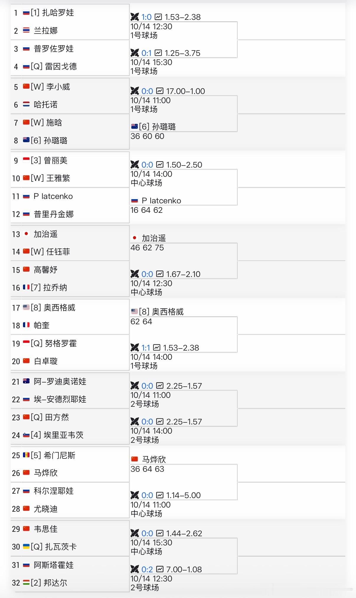 韦思佳、高馨妤、田方然及尤晓迪等也在正赛签表中