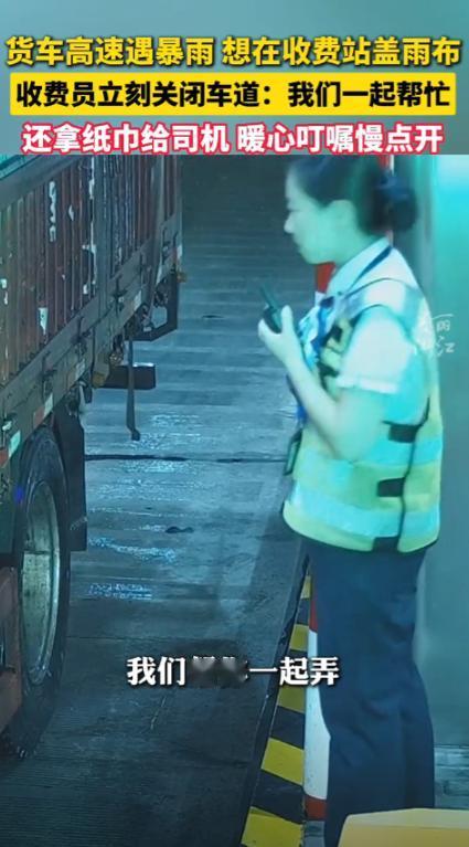 “这收费站火了!”10 月 3 日,浙江杭州,一货车司机送货时,天空突然下起了雨。 他拉的货物要是淋透了可不得了,—— 要知道 2024 年河南就有司机因镀锌钢带淋雨没及时处理,最后赔了 1.7 万呢。 他攥着方向盘往收费站挪,心里直打鼓,就怕收费员嫌麻烦把他打发走。 谁能想到收费员听了他的请求,二话不说就按下了车道关闭键,这操作在车流量大的节假日可不常见。 收费员转头就朝岗亭喊同事,几个人拿着雨布快步走过来,动作麻利得像经常配合似的。 雨布盖好捆牢后,收费员又从岗亭里拿了包纸巾递过来,还不忘叮嘱两句路上小心。 司机后来在网上说,自己本来只敢求个停车的地方,哪承想连人工都给配齐了。 这可不是浙江高速第一次有这样的暖心操作,新华网刚报道过杨林收费站坚持九年给司乘送中秋月饼呢。 有网友评论说 “这一看就是浙江”,毕竟连绿通政策他们都执行得特别细致,更别说这种应急帮忙了。 收费员的举动看着简单,却戳中了货车司机的难处,他们跑长途最怕货物出问题,那可是血汗钱啊。 而且关闭车道帮忙也不是瞎操作,浙江高速有 “路警医” 联勤机制,早有应对车流的预案。 要是换个地方,说不定司机得自己冒雨盖布,弄不好还得被催着赶紧走。 这些收费员手里的便民服务箱真不是摆设,之前衢州廿八都收费站还用里面的晕车贴帮过小女孩呢。 网友说 “必须实名曝光”,其实是想让更多人知道这种超出职责的善意有多可贵。 你们跑长途时遇到过这种暖心的站点吗?