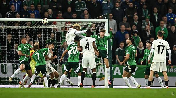 北爱尔兰0比1德国 沃尔特马德的头球技术还得再练练,不能球来了缩脖子,但这一次恰到好处,肩膀把球给“顶”进去了。这也是沃尔特马德国家队首球。