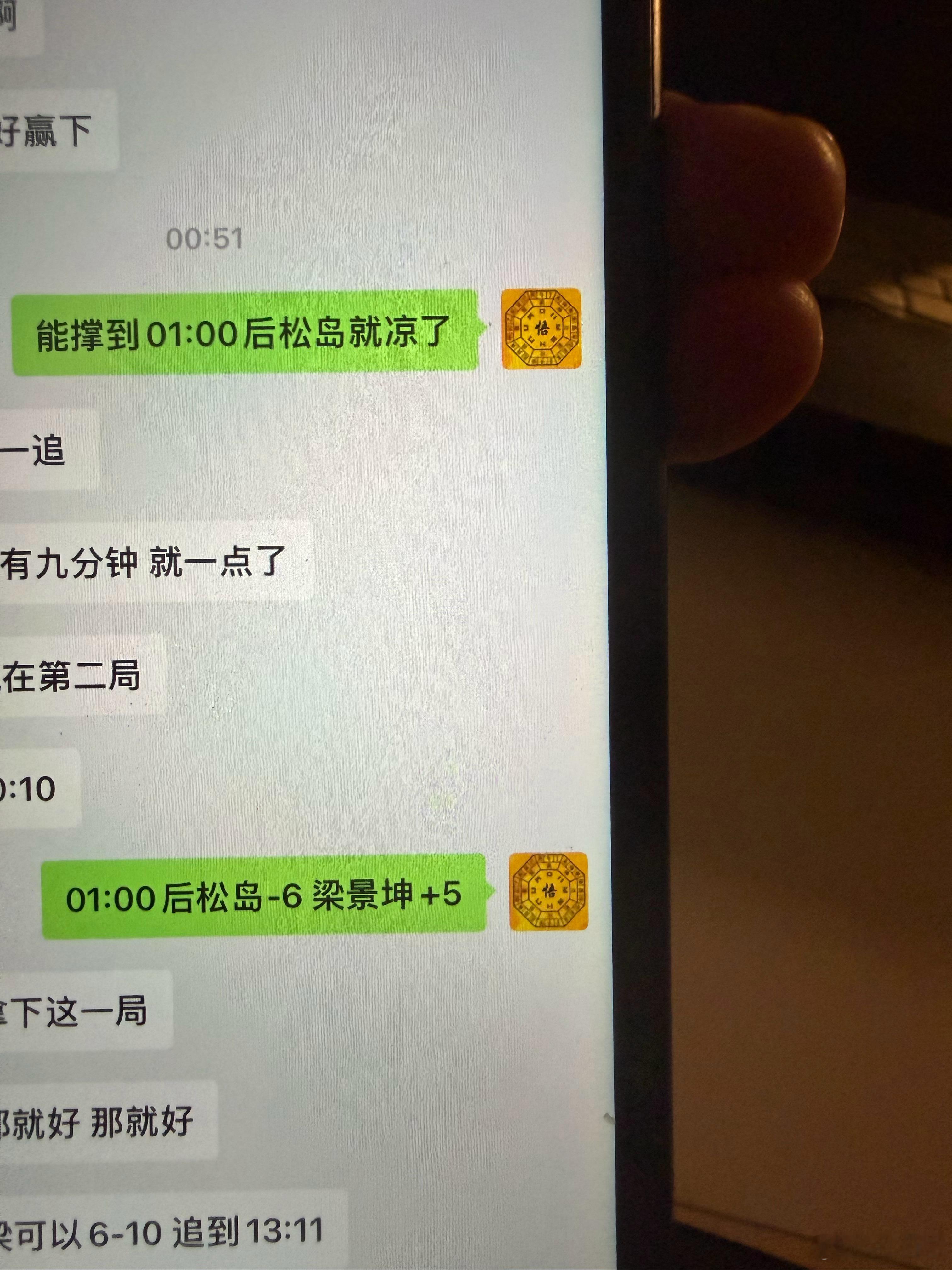 那不就赢了嘛,01:00后岛子确是失误率陡增。我可不是什么靠猜,我只要在看这场球,他们只要尽全力在打我基本不会看走眼,包括01:00前松岛占优。 ​​​