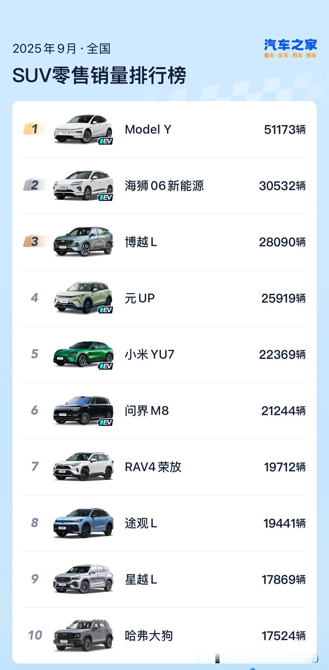 看看现在各个车型的销量的前十榜单,几乎都被各种新能源占据。尤其是在细分的小型车,已经完全被新能源垄断。目前还能占据一席之地的,也就是SUV领域,而且这还仅限于紧凑型。在中大型SUV领域,也是被新能源统治。