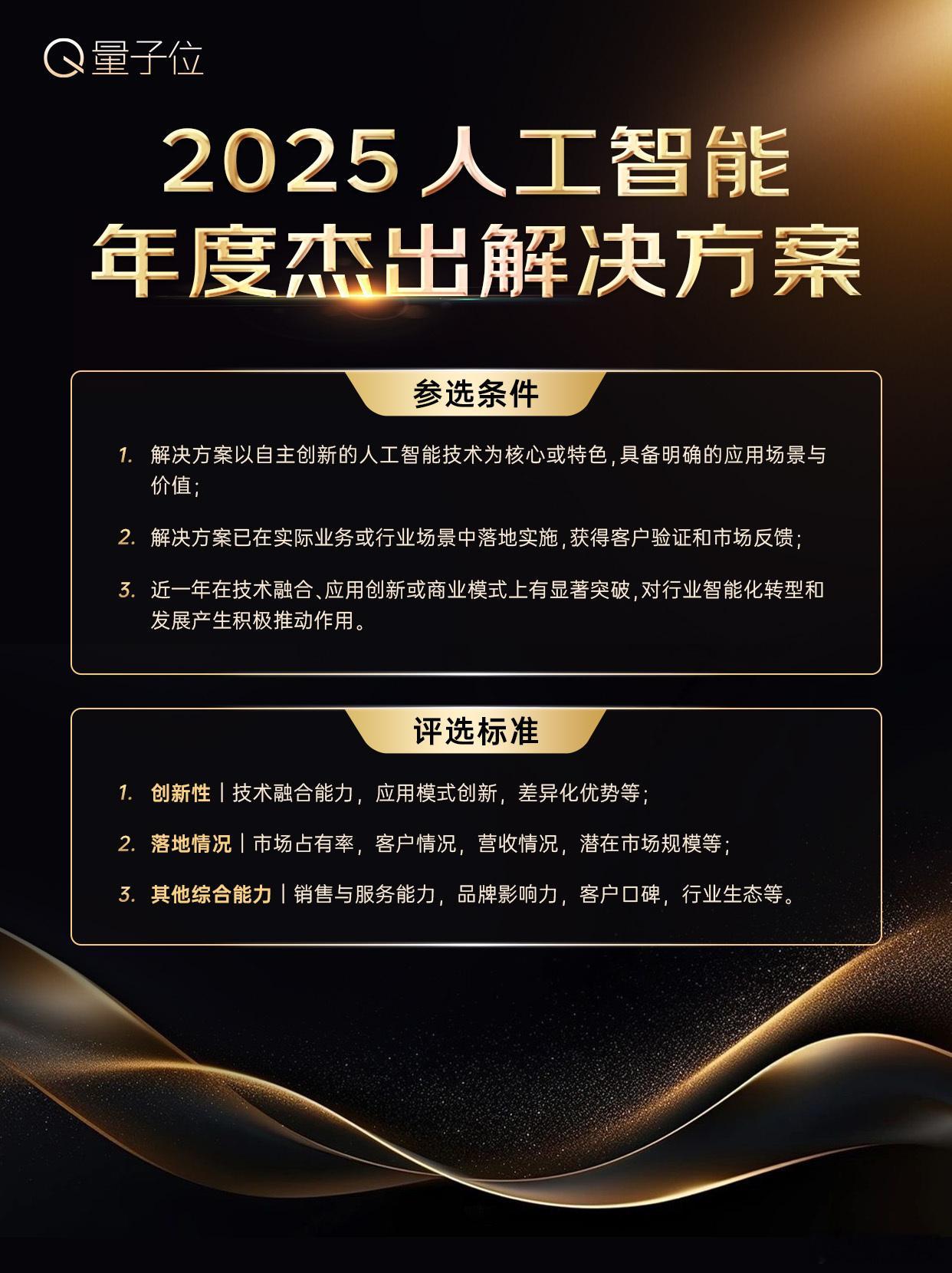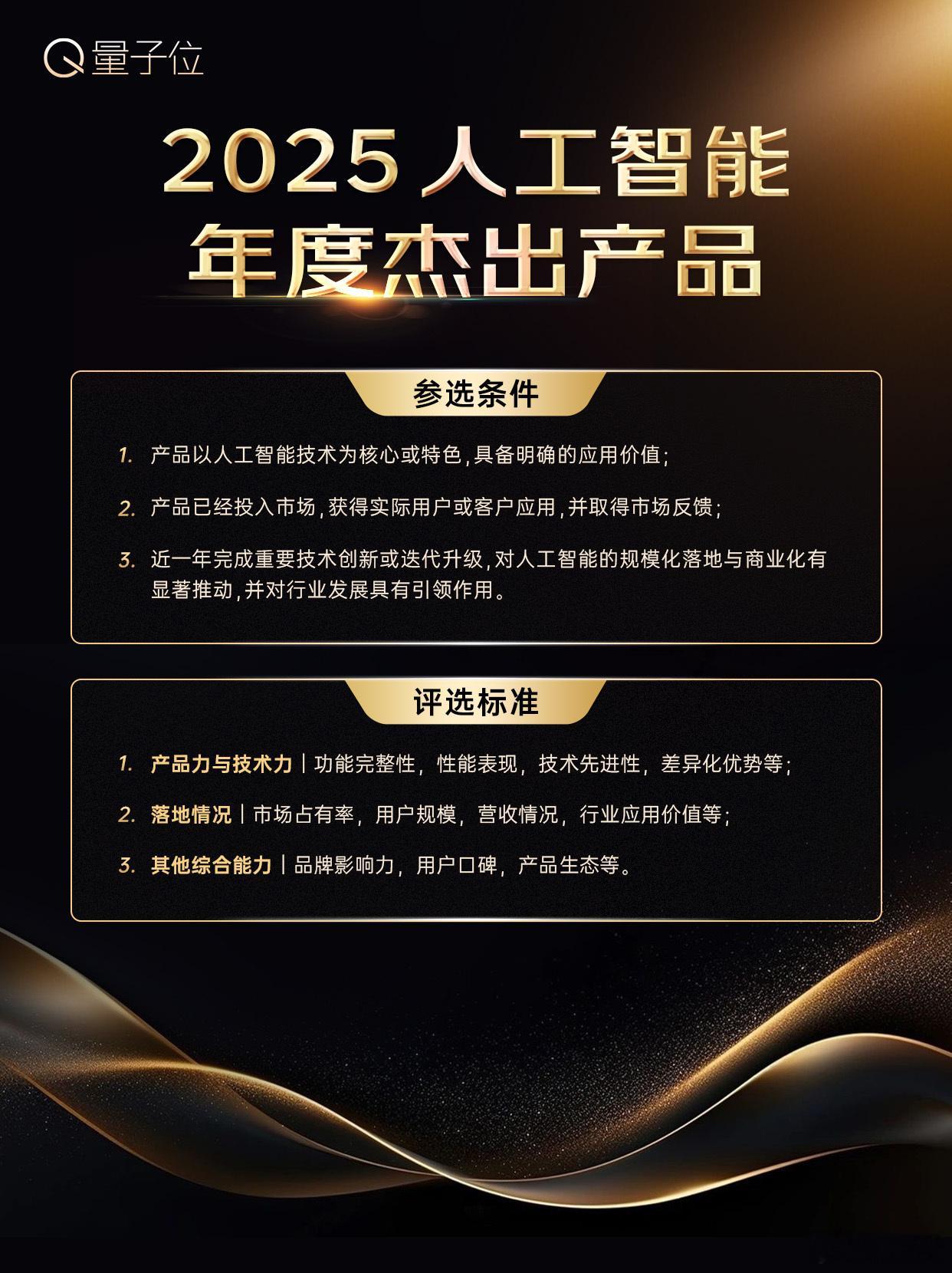 量子位人工智能年度榜单正在报名☄️【企业|产品|人物】奖项虚位以待