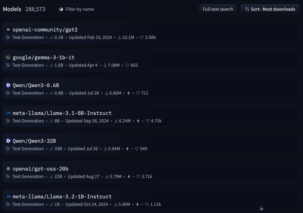 另一个角度,从HuggingFace的模型下载量和模型趋势上,也可以看出开源模型领域,中国力量越来越活跃、越来越强大了。