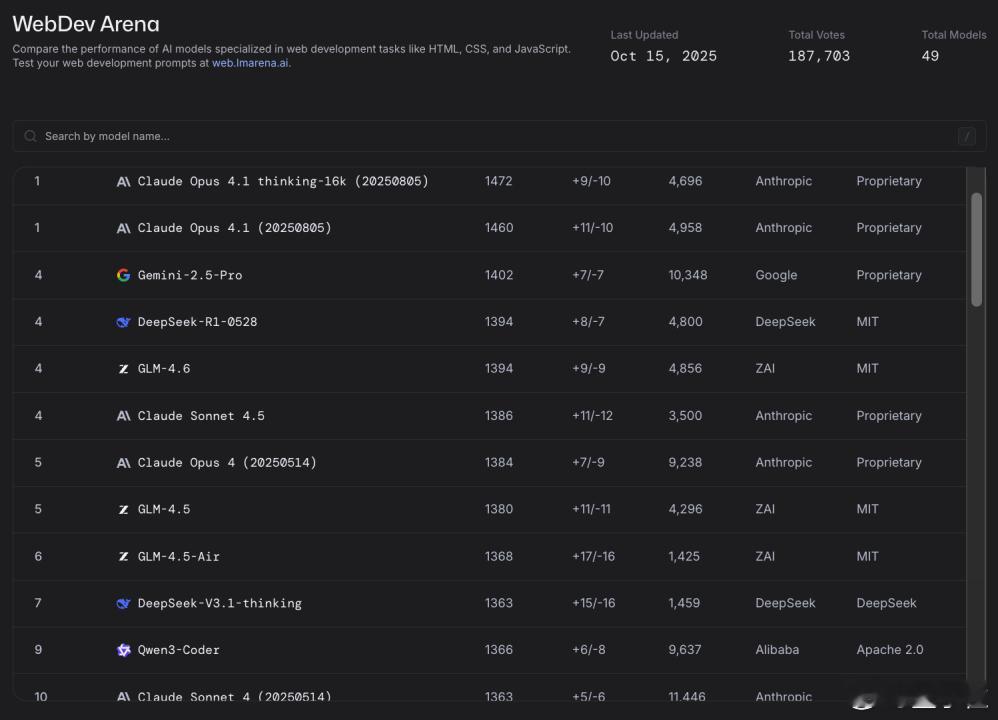 前端开发排行榜中,国产开源模型更是实现了跟编程SOTA Claude的分庭抗礼,DeepSeek-R1/V3.1、GLM-4.6和Qwen3-Coder都排到了前10。【图5】