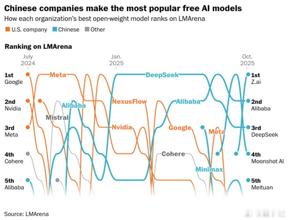 10月,公开数据显示,来自中国的开源大模型已经牢牢占据榜单前五。