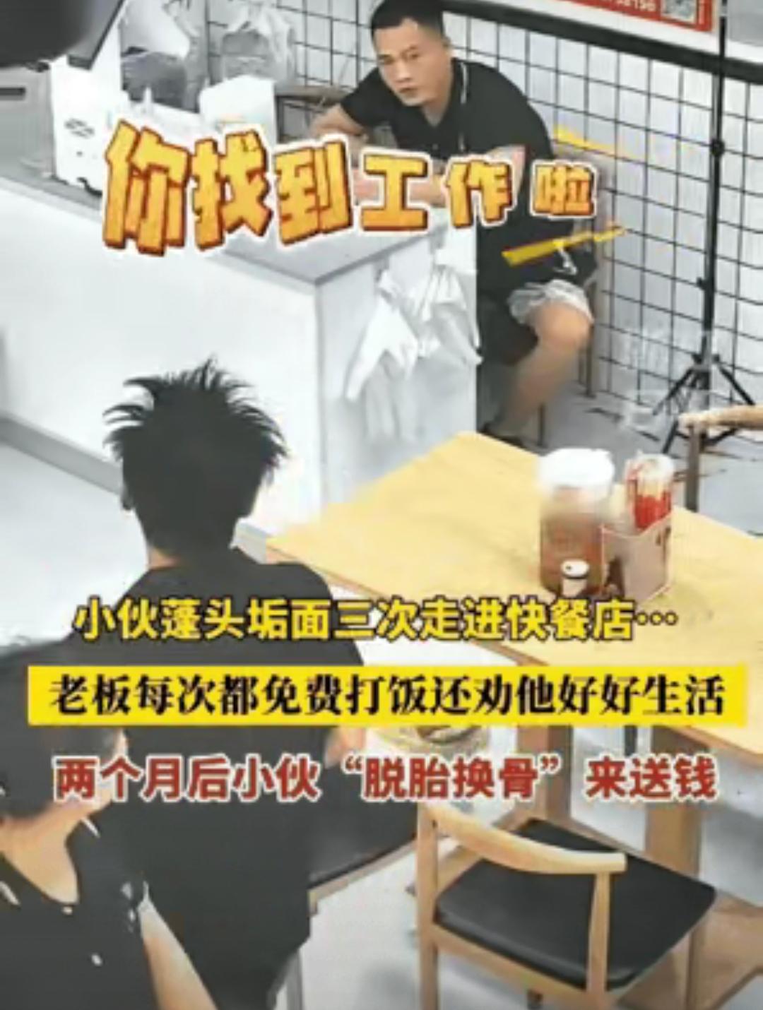 谁能想到,一碗热饭的力量能大到改变一个人的模样!广州快餐店老板的善意没掺半点虚的,而小伙记着这份暖、拼命变好的样子,更让人心头一热——这才是善意该有的“双向奔赴”! 七月小伙蓬头垢面来求助,老板夫妻没查户口、没摆脸色,直接给饭;后来再上门,两次都没收钱,还劝他收拾干净找工作。这份“帮人不图啥”的实在,比啥都金贵,换谁都会往心里记。 十月小伙穿得整整齐齐来还钱,递烟又塞100块,老板要还他还骑着车跑了。这钱是新工作挣的,不是啥大钱,却是最郑重的感谢。其实哪用得着惊天动地的大事?有人愿意在难时拉一把,有人记得这份好并努力变好,就够暖了。 善意从不是单向输出,你给的一点光,总有人会捧着它长成自己的太阳。你见过哪些“小善意换大温暖”的事?来聊聊~