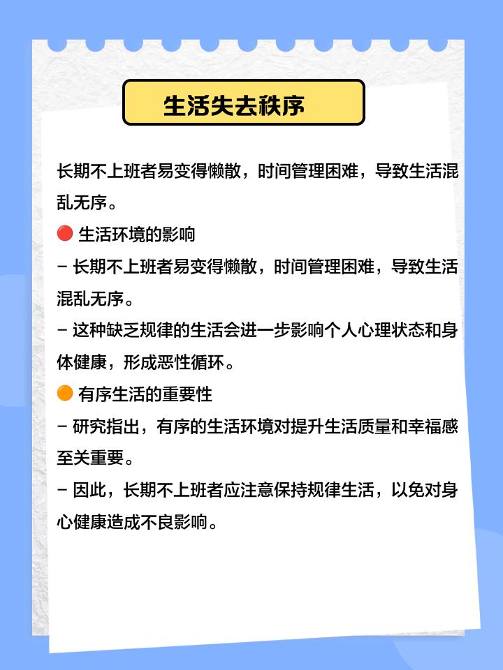一人长期不上班会变成什么样子? 一人长期不上班,会变成什么样子?这个问题看似简单,却隐藏着一场关于人生、价值和自我认知的深刻思考。或许有人会觉得,闲着也是一种自由,是对压力的解放;但更多的人会担心,这样的“放空”会不会让人逐渐迷失自己,甚至陷入一种无法自拔的状态。 实际上,长时间不上班,带来的变化远比表面看到的复杂。有人会变得更加自我反省,重新审视自己的人生方向;有人则会逐渐被孤独吞噬,甚至丧失生活的动力。这个过程,像一面镜子,映照出我们内心深处的渴望与恐惧,也揭示了社会对“成功”和“价值”的定义。 很多人可能会觉得,不上班意味着失去了社会认同感,意味着被边缘化,但事实并非如此。其实,这也是一种自我重塑的机会。有人在这段时间里,发现了自己真正热爱的事情,开启了新的生活方式,甚至找到了人生的另一种可能。而有人则在空虚中迷失,逐渐远离了曾经的梦想,变得越来越难以自我激励。 从人性的角度来看,长时间不上班暴露了我们对安全感的渴望,也反映出我们对自我价值的认知。社会赋予了工作以意义,但真正的幸福,或许并不完全来自于职位和收入,而是来自于内心的满足感和生活的充实感。有人在工作中迷失了自己,有人却在“空闲”中找到了更真实的自己。 这也让我们反思:在这个快节奏、竞争激烈的时代,我们是否过于把“工作”绑架成了人生的全部?我们是否忽略了生活的多样性和可能性?或许,短暂的“放空”并不是逃避,而是一种深刻的自我探索。它让我们重新审视,什么才是真正值得追求的幸福。 所以,当有人问“一人长期不上班会变成什么样子?”我想说,这不仅仅是一个关于变化的故事,更是一场关于自我认知的旅程。它告诉我们:无论身处何境,保持对生活的热爱和对自我的探索,才是永恒的动力。或许,下一次当你面对人生的选择时,不妨停下来想想,也许,最精彩的篇章,就在下一次转折点上等待着你去书写。不上班也焦虑 不上班感悟