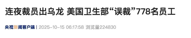 美卫生部连夜裁人,裁出乌龙了…… 当地时间2025年10月14日,美国卫生与公