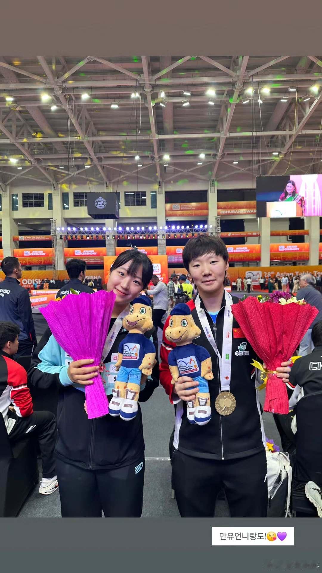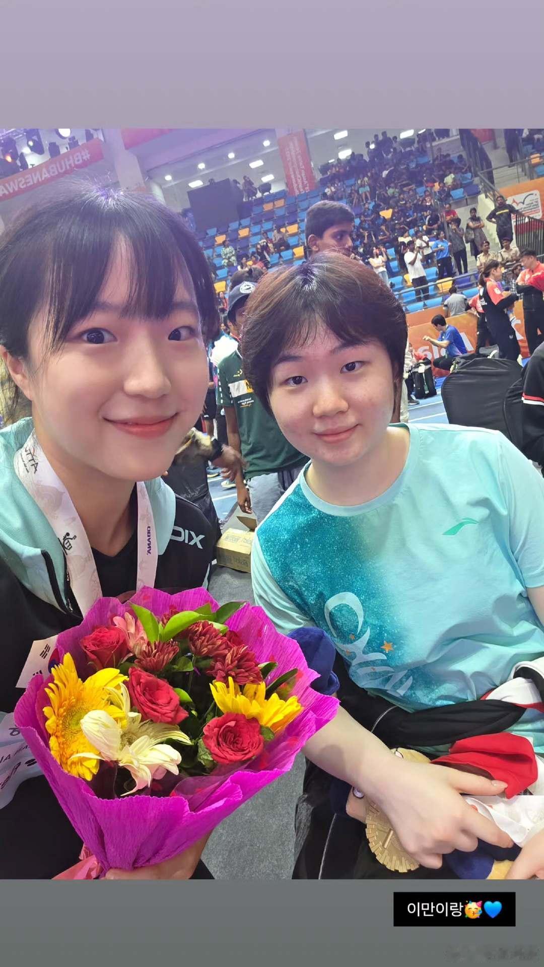 韩国选手申裕斌更新社媒,晒出自己和孙颖莎、王曼昱和蒯曼的合影