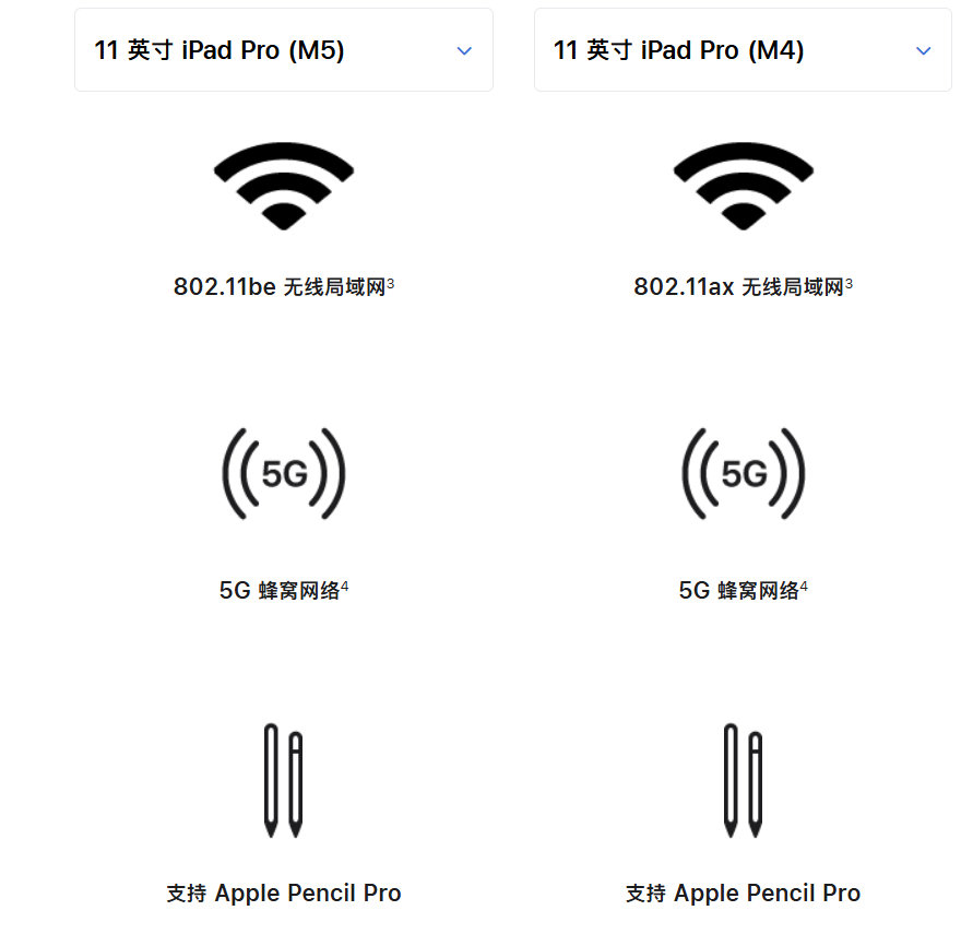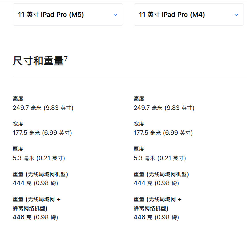 新款iPadPro发布新款的iPad Pro,其实相较于上一代就是升级为M5芯片,内存有所升级,其它应该都没啥变化?我看尺寸规格都基本一致了。哦背面也没有写iPad Pro的字样了