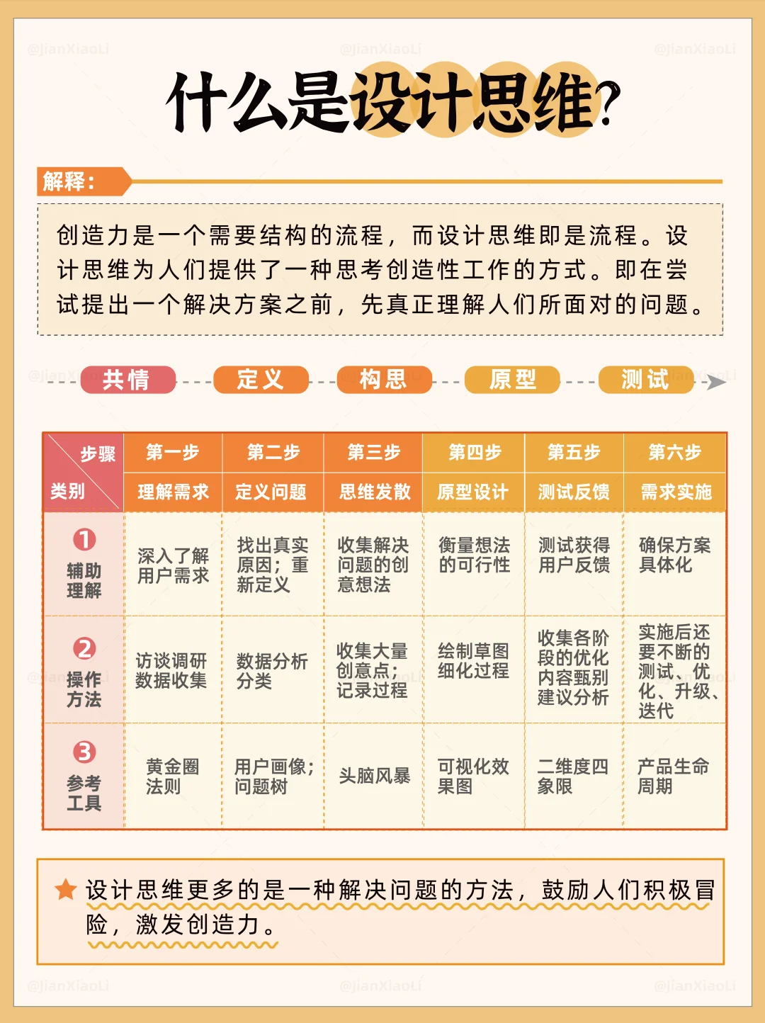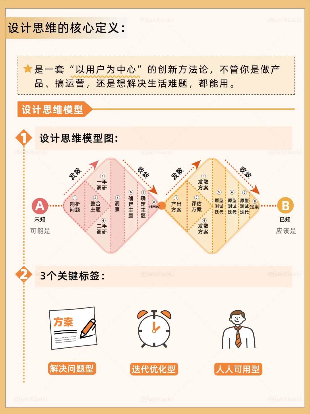 设计思维是一套以用户为中心的、通过协作共创与快速实验来解决复杂问题的创新方法论。👏