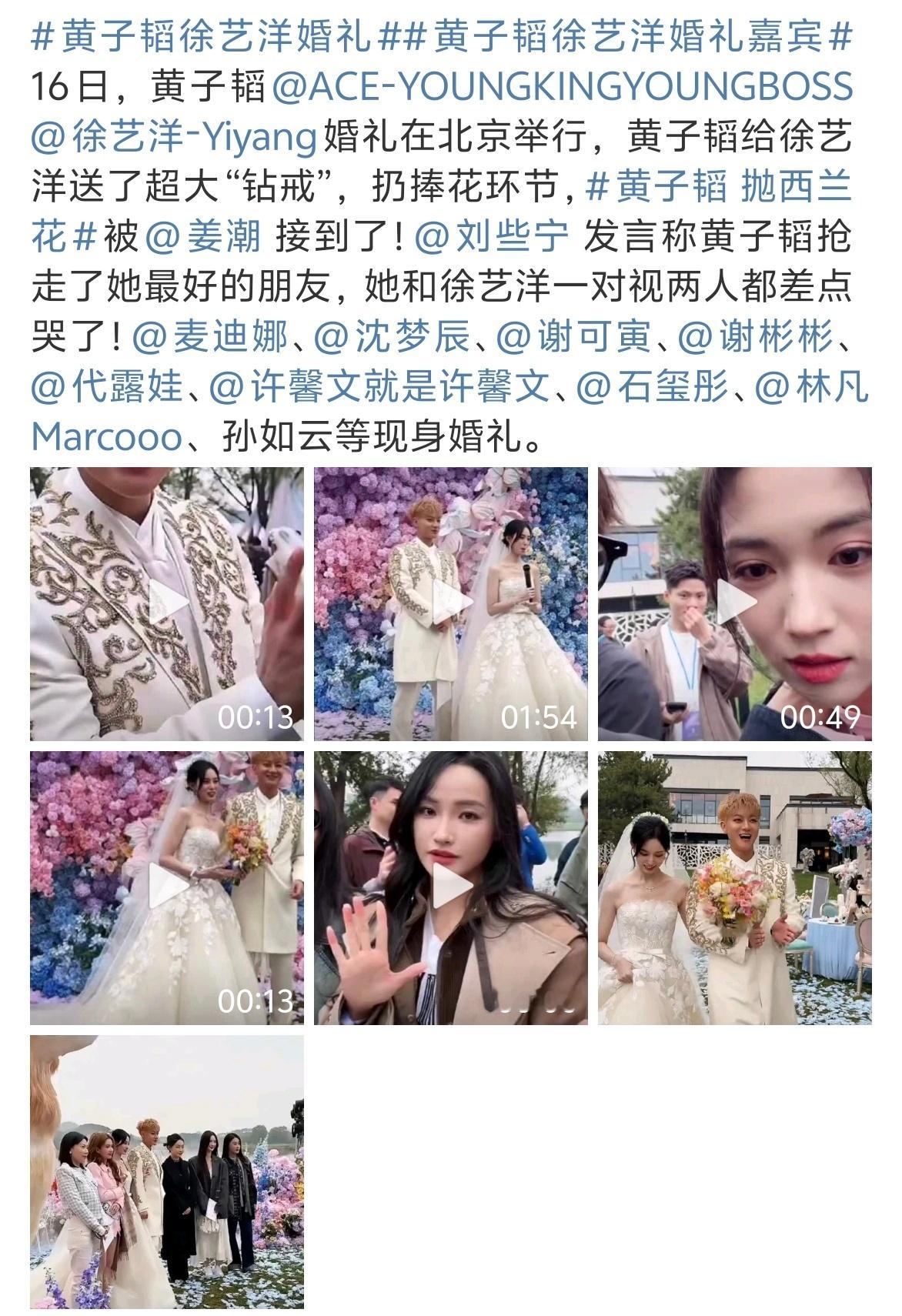 10月16日黄子韬和徐艺洋的婚礼在北京盛大举行,婚礼现场黄子韬给徐艺洋送了超大玻