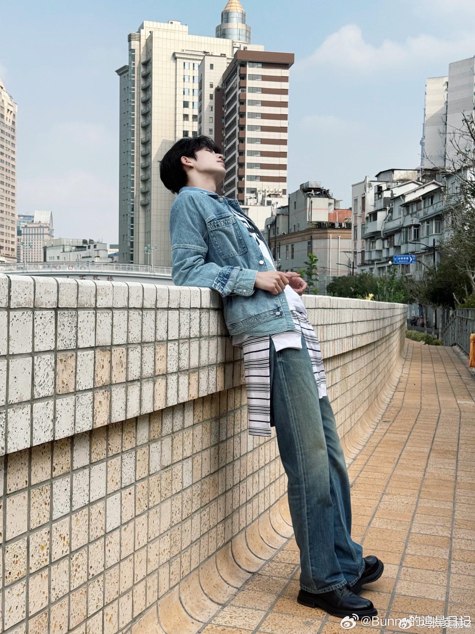 凌赫 浅蓝牛仔外套搭配简约白T,眼神清冷有格调,随性穿搭也藏不住的氛围感,太😎啦~