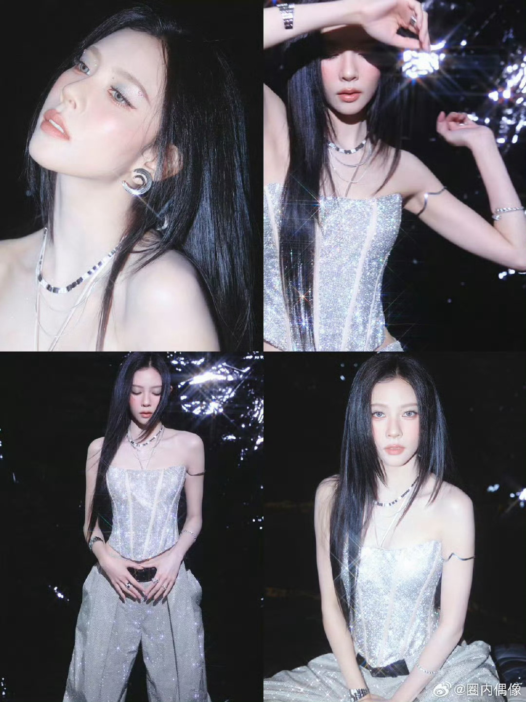 宋妍霏这波闪耀直接戳中审美!银色亮片吊带外搭同色系闪钻西装,抬手间满是细碎光芒,仿佛把星光揉进了衣料里。利落高马尾衬得脖颈线条超优越,耳间垂落的闪钻长链随动作轻晃,舞台上甩发跳舞时又酷又媚,冷白皮在灯光下和钻饰相互映衬,甜酷气场直接溢出屏幕,这才是真正的“闪光体”吧!