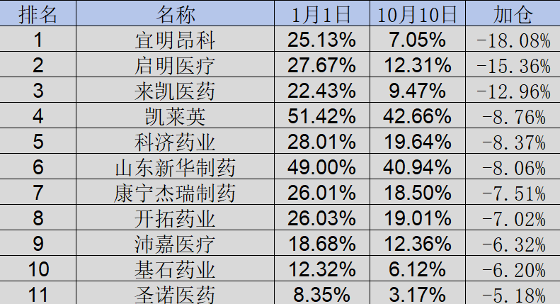 图:内资持股比例下降超5%的医药公司