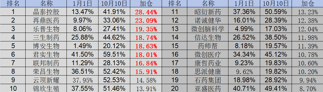 全面复盘了这百余家港股通医药标的之后,我们整理出了这轮港股创新药牛市中港股通南向资金持股占比提升速度最快的20家医药公司。