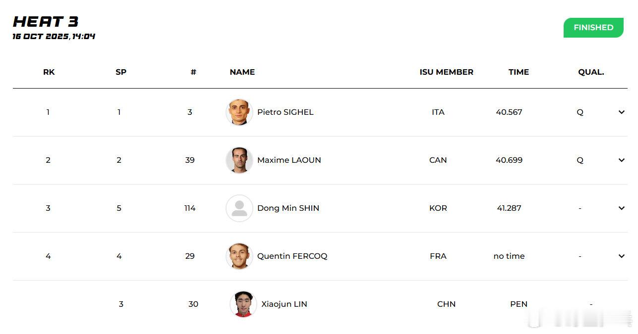 第三组出战的林孝埈和法国选手一起摔出赛道,赛后被判犯规