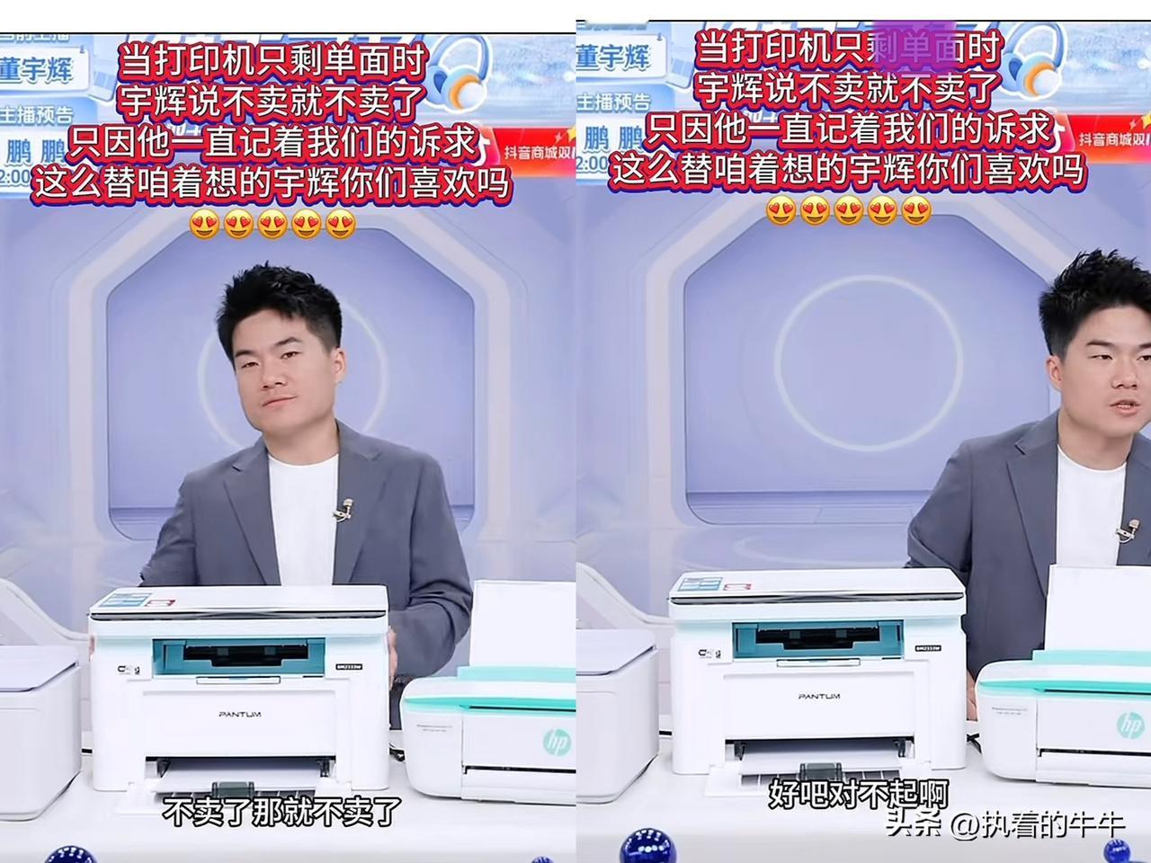 “不卖了!” 董宇辉当场下品! 董宇辉直播间发生了一件令人匪夷所思的事情! 听说要上双面自动打印机,几百万人眼巴巴的等着,结果,商家准备了80台,一上线就被抢光。 没想到商家随后推上了单面低配版,董宇辉直接都尴尬了,问商家呢?结果工作人员说,商家卖完回家了。 董宇辉直接霸气回应“不卖了”还连给粉丝道歉,表明会继续寻找符合粉丝要求的。 网友评论说:几百万人抢80台打印机?商家怕不是把直播间当耍猴场!董宇辉黑脸下品,这波守底线必须夸![赞][赞] 也有的说:董宇辉的才气我还是很喜欢的,比较佩服他墨水比较多。但是东西我很少买,因为毕竟供应商不是他。 但不论如何,他选择下品不推荐,就是为了守护自己的信誉,守护观众的信任! 你们会不会因为喜欢一个直播,就在直播间买东西的?