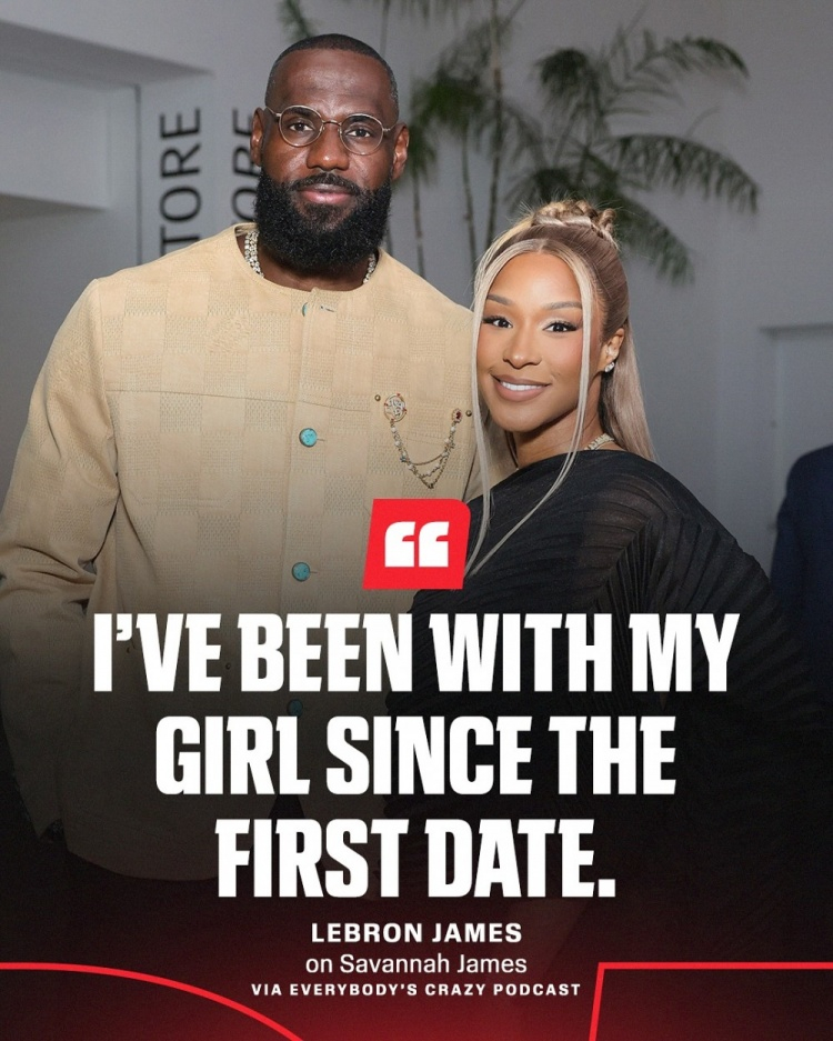 詹姆斯近日在妻子的播客里谈到了两人的爱情经历: