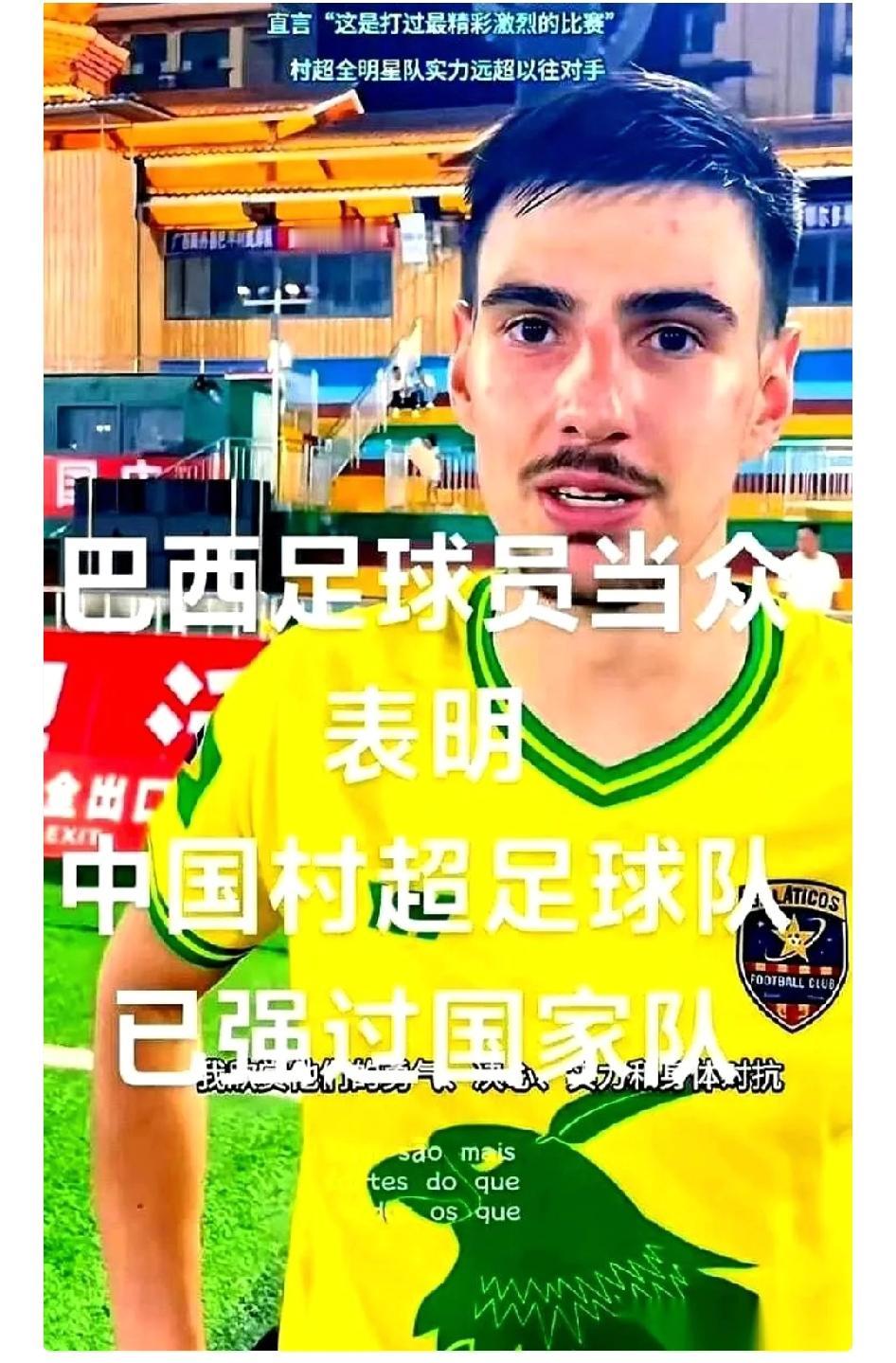 巴西的一群愣头青验出了国足的底色 一群巴西青训的球员组成的“巴西银河联队”来到贵州参加村超比赛,他们在村超的首秀以3-2小胜村超球队。 在赛后采访中,巴西队长路易斯表示,他们很享受这场比赛,他和队友都很喜欢这种拼劲十足的踢法,并且认为村超球员的配合和拼劲都超过一些职业队,甚至比之前遇到的一些国家队都更强! 网友评论道:国足一年薪水总和3亿,在场上和村超球员拼劲不一样,或许村超球员的拼劲来自普通百姓,而国足球员都是有钱人! 国足就是一群有钱人,缺少了普通百姓的血性和拼劲!没有了为国争光的动力,只有不能受伤,继续挣钱的想法! 对此,您怎么看?欢迎在评论区留言!