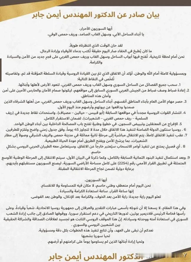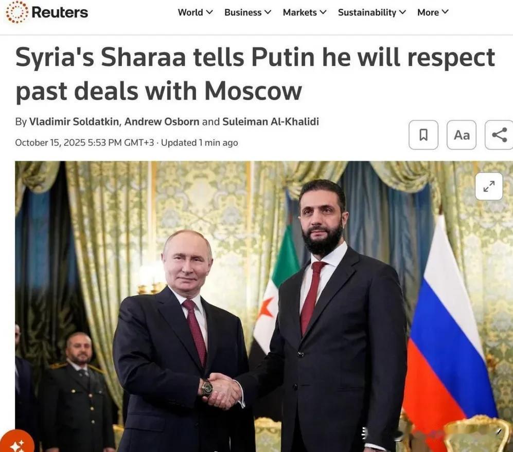 巴沙尔最后的势力也全部完了!俄罗斯与朱拉尼达成协议,所有武装组织都要撤出叙利亚沿海地区。朱拉尼释放被关押的巴沙尔军队军官,并且恢复军官和士官职务。 大马士革的王座,彻底与巴沙尔无关了。俄罗斯与朱拉尼的一纸协议,如同给巴沙尔的政治生命盖了棺,钉了钉——他最后的基本盘,终究还是被人拉走了。 这份协议藏着太多信息量。核心一条,所有武装组织必须撤出叙利亚沿海地区,谁要是敢说个“不”字,俄军的战机随时能从天而降实施轰炸。俄罗斯军队则全面重返叙利亚,在多个关键地点重新部署,用枪杆子为局势“兜底”。 这哪里是简单的停火约定,分明是俄罗斯亲手将朱拉尼扶上了“准统治者”的位置,用自己的军事力量为其扫清障碍。朱拉尼这边也投桃报李,打出了一套拉拢人心的组合拳。 被关押的巴沙尔军队前军官,不仅能重获自由,甚至有机会官复原职,连士官的职务都能恢复。要知道,这些军官曾是巴沙尔倚仗的核心力量,如今却成了朱拉尼巩固统治的“棋子”。 更狠的是对阿拉维派的安排,这个巴沙尔的“基本盘”,被许诺可以掌握自己的公共安全,在聚集区拥有高度自治权。这一下,等于直接挖空了巴沙尔最后的根基,让他彻底成了无源之水、无本之木。 谁能想到,朱拉尼会走到今天这一步?这个1982年出生的戈兰高地人,早年曾因崇拜“基地”组织创始人本·拉登投身圣战,2003年被列为“全球恐怖分子”,还在美军监狱里蹲过五年。 2011年出狱后,他拿着“基地”组织的资金回到叙利亚,组建“支持阵线”,靠武装袭击和暗杀与巴沙尔政府对抗。可短短十几年过去,他不仅解散极端组织、组建“解放叙利亚”联盟,还穿上西装接受CNN专访。 刻意展现世俗化形象,如今更是得到俄罗斯的背书,距离权力顶峰只有一步之遥。这样的逆袭,简直比戏剧还要离奇。 俄的算盘打得噼啪响,它给朱拉尼的支持可不是口头承诺,而是实打实的好处。 帮着重建叙利亚军队,参与开发矿产资源,还要出钱出力建设基础设施。表面看是帮朱拉尼稳定局势,实则是为自己谋利。叙利亚沿海地区的港口、内陆的矿产,都是俄罗斯垂涎已久的资源,掌控这些,就能在中东拿到稳定的利益支点。 更关键的是,俄军重返叙利亚,等于掐住了黎巴嫩真主党与伊朗的“生死运输线”。这条线路是伊朗向真主党输送武器和物资的关键通道,以前被伊朗牢牢把控,现在落入俄罗斯手中,等于拿到了制衡伊朗和以色列的筹码——想让运输线通畅?就得看俄罗斯的脸色。 连土耳其都掺和了进来,忙着帮朱拉尼重建军队。这背后同样是利益交换,土耳其一直想在叙利亚北部扩大影响力,扶持一个亲土的政权,既能压制库尔德武装,又能在中东刷存在感。朱拉尼的崛起,恰好给了土耳其这样的机会,双方一拍即合,各取所需。 各方势力的加持,让朱拉尼的统治愈发稳固。以前还能指望阿拉维派忠心耿耿,现在人家有了自治权,日子能过下去,谁还愿意跟着流亡莫斯科的巴沙尔卖命?以前的军队军官能官复原职,自然会对朱拉尼感恩戴德,成了他麾下的力量。 外部有俄、土撑腰,内部拉拢了关键势力,朱拉尼的位置坐得越来越稳,巴沙尔想再回大马士革?简直是痴人说梦。有人说巴沙尔还能在莫斯科当富翁,可这又算什么? 曾经的叙利亚总统,如今成了寄人篱下的“闲人”,连自己的族群和旧部都被对手拉拢,这样的“富贵”,恐怕满是心酸。他一手经营的权力体系,终究还是毁在了自己手里,更成了大国博弈和对手崛起的垫脚石。 俄这步棋走得确实高明。既摆脱了只支持巴沙尔的被动局面,又通过扶持朱拉尼拿到了更多实际利益,还顺带压制了伊朗和以色列,一举多得。可朱拉尼真的能稳住叙利亚吗?不好说。 他的组织前身是极端组织,虽然一直在淡化宗教色彩,但骨子里的意识形态能否兼容叙利亚复杂的民族和教派?阿拉维派的自治会不会变成“国中之国”?土耳其和俄罗斯的支持会不会变成新的干涉?这些都是埋在叙利亚土地下的“定时炸弹”。 但不管怎么说,巴沙尔的时代已经彻底落幕了。俄罗斯与朱拉尼的协议,就是给这场权力更迭盖下的公章。叙利亚的未来会怎样,没人能打包票,但可以肯定的是,舞台中央再也不会有巴沙尔的位置。 他剩下的,或许只有莫斯科的豪宅和对过往的回忆,而叙利亚的命运,早已交到了朱拉尼和背后那些大国的手中。