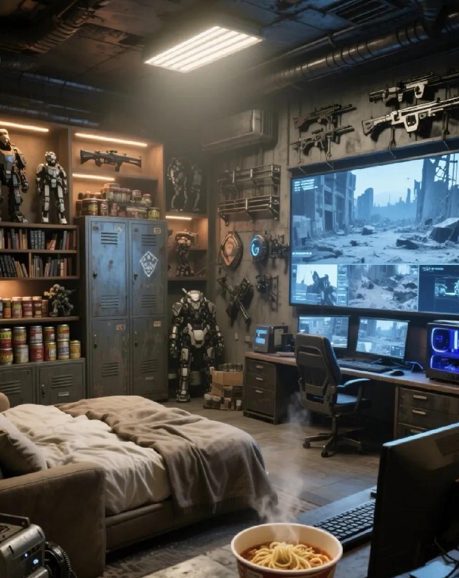 假如这是个末日地堡,如果到时候只剩下这3个地堡,这是里面的环境,要在里面待上五年才能出来,你会选择哪个地堡? 而且,每一个地堡都有足够五年的食物,防身设备俱全,也都有网络,在这种情况下,你只有一次选择,你选几号地堡?