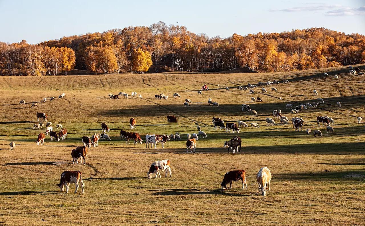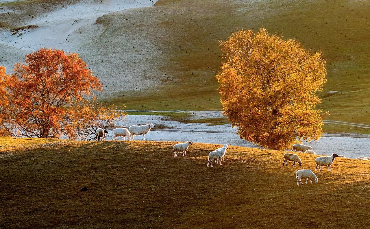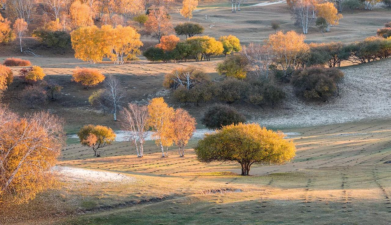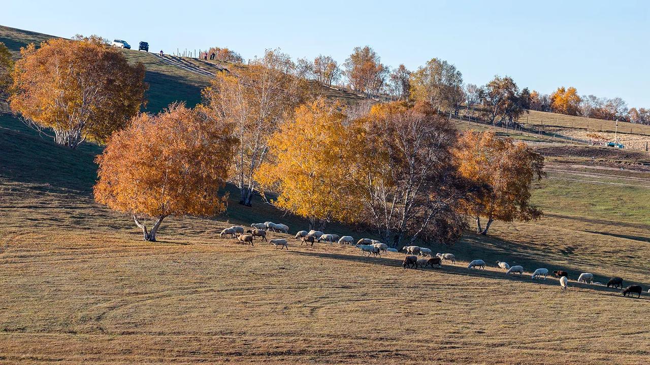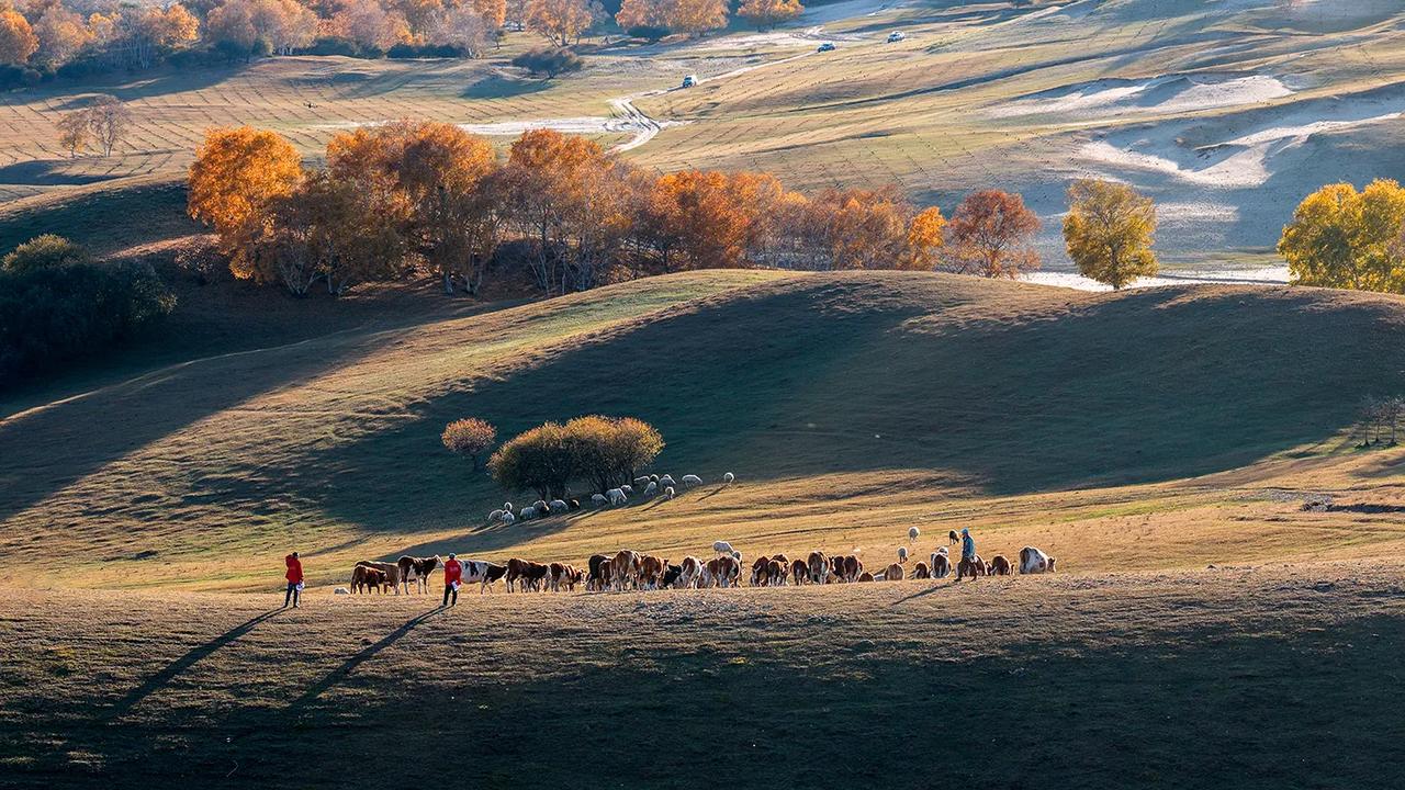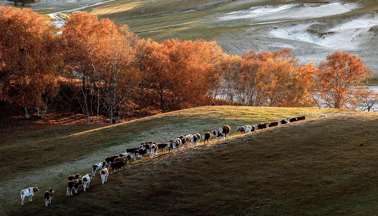 9月28日傍晚时分,我随摄影团来到了一个叫“扣啃脑”的地方。“扣啃脑”常用于拍摄牛羊群暮归等草原景观,名称源于蒙古语音译,意为“光影交汇处”。