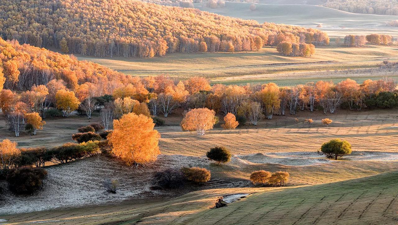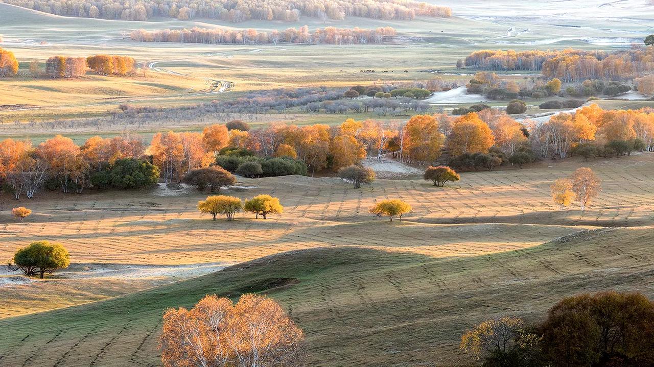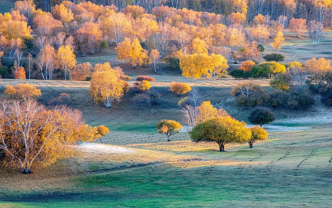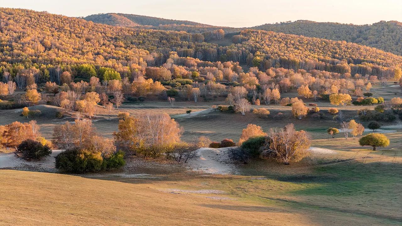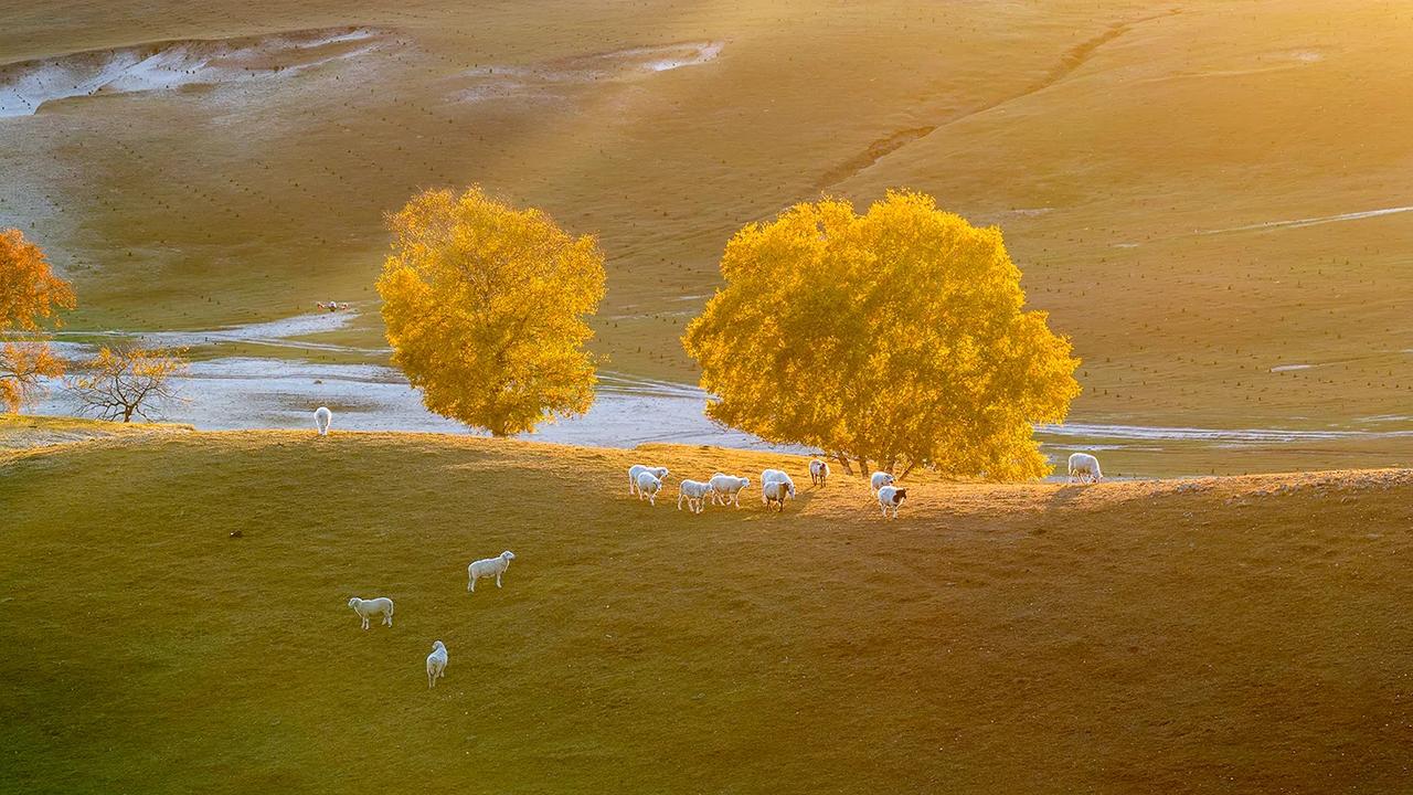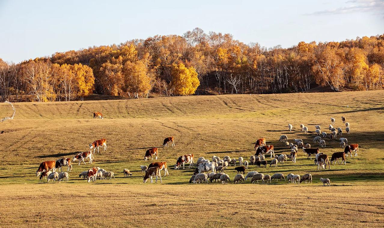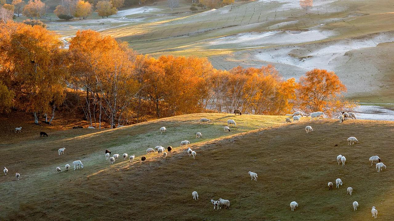 9月28日傍晚时分,我随摄影团来到了一个叫“扣啃脑”的地方。“扣啃脑”常用于拍摄牛羊群暮归等草原景观,名称源于蒙古语音译,意为“光影交汇处”。