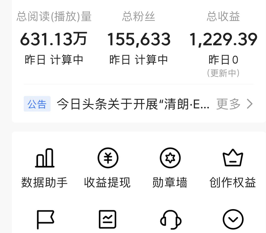 头条三年半:631万阅读量与1229元收益,我收获了更珍贵的东西 在今日头条写了三年半,631万阅读量的后台数据,让不少人以为我早靠流量赚钱。可我坦诚总收入仅1229元时,评论区很热闹:有人赞我“主业外守热爱,真难得”,也有人嘲讽“三年一千多,不如扫马路”“人家一月顶你三年,还瞎乐”。 其实我有稳定工作,这1229元本就是额外惊喜,像平台给的“鼓励红包”,数额小却满是欢喜。我也羡慕月入几十万的创作者,但深知他们的成功藏着风口、积累与运气,学不来,不如踏实做自己。 我写头条只为三样:练笔、会友、记人生。从段落生硬到文字有温度,读者说“看你文章像聊天”,比稿费还暖心。更幸运的是,15.5万粉丝里,有行业前辈愿与我互粉,帮我改文、荐书,这份成长是无价的“无形资产”。 有人说我是头条托儿,我没这能耐,但真心认头条的好——对比百家号的低流量、一两月才到账的提现,头条提现快,更给普通创作者大舞台。 做自媒体别指望养家糊口,放平心态才快乐。我写文不想“能不能爆”,只问“想表达什么”。笨鸟先飞就好,只要行动就有希望,总比临渊羡鱼强。未来我还会写下去,毕竟有份热爱,已是幸福。