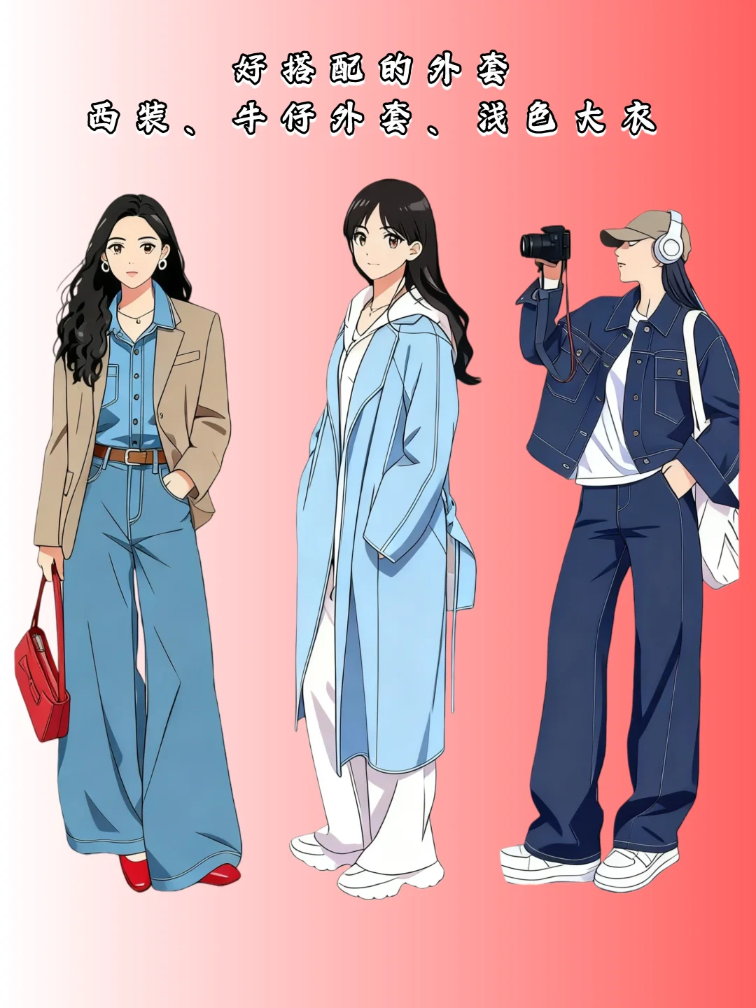 - **牛仔外套**:复古休闲还百搭,蓝色系衬得黄皮超有气色,搭裙装/裤装都能穿出松弛感;