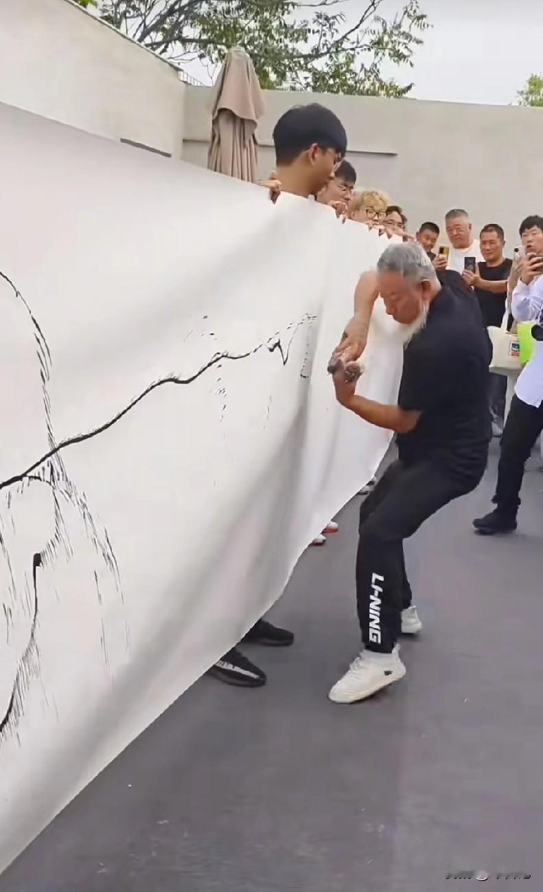 李明给大师们比真的差远了, 一个小孩给大师们怎么比。 你看大师们一个个瞎画, 那个喷墨的最搞笑, 还有最后一个这个大的毛笔, 估计李明都拿不动, 我觉得李明给他们比, 差的不仅社会阅历, 还有脸皮要够厚。 书法我真不懂, 他们画的啥我也看不懂。