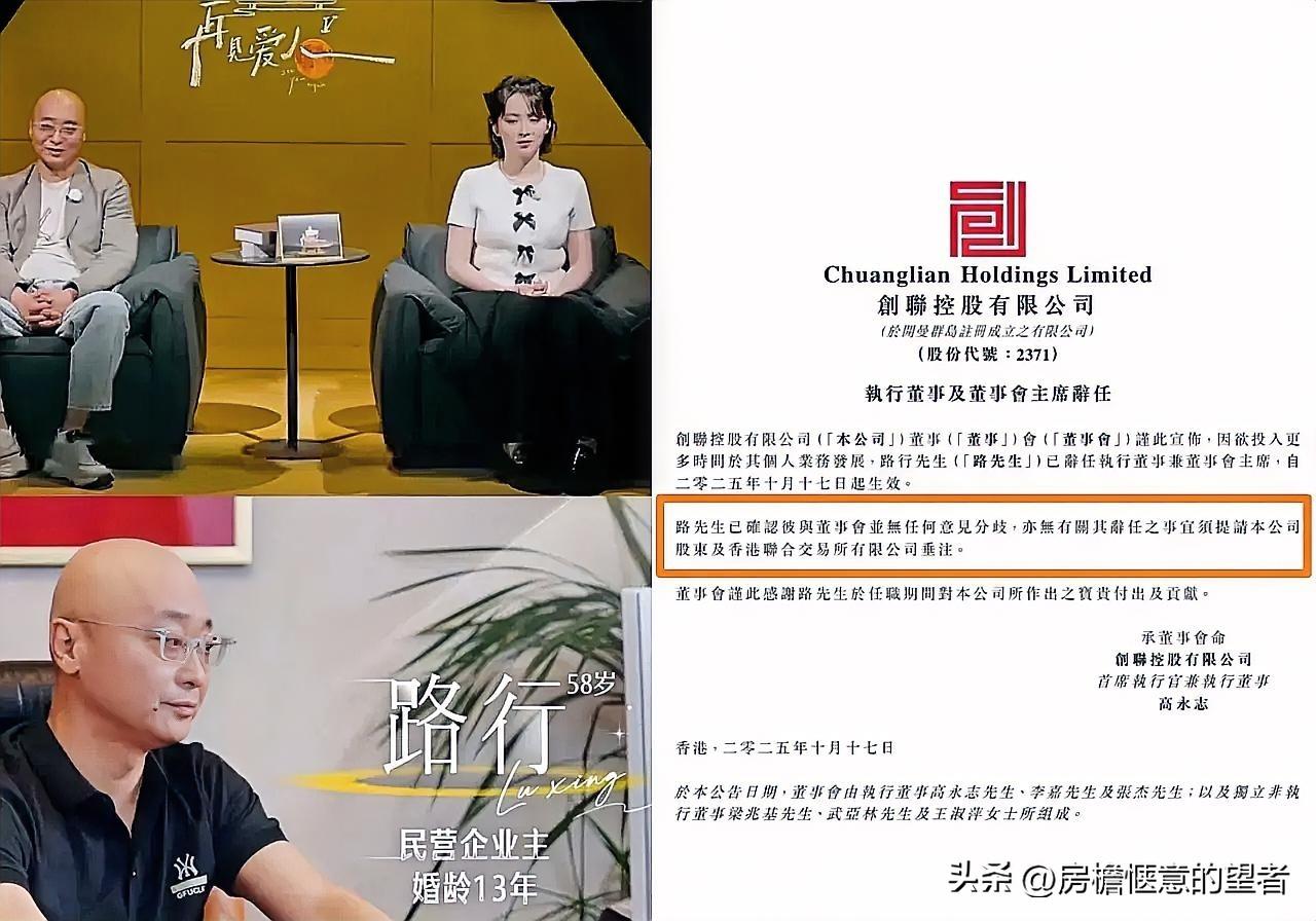 果然事出反常必有缘由 就在人们为路行那么高的 CEO 身份,出席《再见爱人》是真爱时候,一则新闻让吃瓜群众看得猝不及防。 有网友扒出,路行在 10.17 已经从所在公司辞职,而辞职生效日当天,路行参加的再见爱人节目播出,可谓是无缝衔接,算盘珠子打得真是直冒火星。 尤其是当人们发现他所在的公司,2023,2024 连续两年业绩亏损,2025 上半年也业绩不佳的时候,路行的上节目行为更让人多了几分猜测。 这下人们对他的看法又发生了改变,有人认为他就是借这个节目炒热度,毕竟要重新创业了,需要一定的曝光度让大家认识自己,为将来事业做准备。 也有网友觉得他是没有了负担,也不会因为自己的言行对公司有什么负面影响,可以说出真心话,跟老婆更交心,让婚姻更稳定。 你觉得如果你是路行,会怎么做呢?