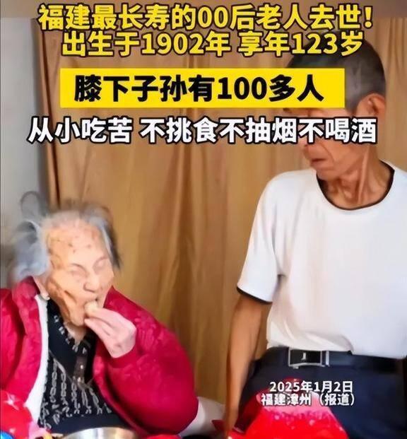 1902年出生的林蛇母3,共有100多名儿孙,可让人难以置信的是,她居然有一个不为人知的“坏习惯”,这么多年基本就没断过! 福建漳州那边刚出殡,一老太太,123岁,消息没怎么传,村里人都去送,现场不吵不闹,大家挺安静围着,林蛇母,大家一直这么叫她,123岁什么水平,清朝还没倒呢,孙中山那会她已经能跑了,六代同堂,家里人能站一排,村里哪个不认识她。 这位跨越三个世纪的老人,生于清光绪二十八年。彼时清王朝摇摇欲坠,孙中山正在海外策划革命运动。林蛇母的童年恰逢科举制度废除前夕,她裹着小脚见证帝制崩塌,又在军阀混战中艰难求生。据族谱记载,她18岁嫁入林家时,陪嫁物里还放着宣统年间的铜钱。 村里老人回忆,林蛇母年轻时总在凌晨四点起床舂米。那时闽南地区土匪猖獗,她不得不在米缸底下挖洞藏粮。1938年日军占领厦门后,漳州米价飞涨,她带着孩子挖野菜时总把最嫩的留给老人,自己啃粗硬的茎秆。这种刻进骨子里的节俭,后来成了儿女们说的“坏习惯”——她总把剩菜藏进陶瓮,说荒年时半碗冷粥能救条命。 上世纪五十年代合作社时期,她是村里最早学会打算盘的妇女。生产队分粮时,她总能准确报出每家每户应得斤两。有次会计多记了工分,她连夜打着火把去大队部更正。这种较真劲儿延续到晚年,百岁高龄仍要亲眼看着孙媳淘米,说少搓揉两遍能多出半碗饭。 改革开放后儿孙们经商致富,给她买金镯子、绸缎袄,她却悄悄把旧棉袄补了又补。有年重阳节全家聚餐,她突然离席很久,后来小曾孙在灶房发现她正把宴席剩的东坡肉往玻璃瓶里装。当孙子埋怨时,她喃喃道:“六零年要是有一勺猪油,你阿太就不会浮肿了。” 这些带着时代印记的生活习惯,实则是百年中国变迁的生存智慧。她经历过光绪年间的旱灾、民国时期的战乱、建国初期的困难岁月,每个特殊时期都在她身上留下烙印。去年整理她卧室时,子女在樟木箱底发现整叠布票粮票,最早一张竟是1955年发行的福建省地方粮票。 这位普通农妇的生命轨迹,暗合着中国近现代史的关键节点。她10岁那年辛亥革命爆发,37岁时抗日战争全面打响,98岁喜迎新千年。其家族六代同堂的谱系,恰似一部浓缩的闽南移民史——长孙林建国援藏三十年,曾孙林泽洋在深圳创办跨境电商,玄孙女去年考取香港大学医学院。 送葬队伍里,101岁的表妹拄着拐杖喃喃:“阿姐带我们躲日本飞机时,总说要看太平年月。”殡葬师发现老人临终紧握的掌心里,藏着一枚磨光的袁大头,这是她7岁当童养媳时,地主婆赏的压箱钱。 各位读者你们怎么看?欢迎在评论区讨论。
